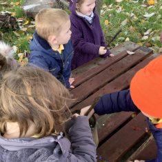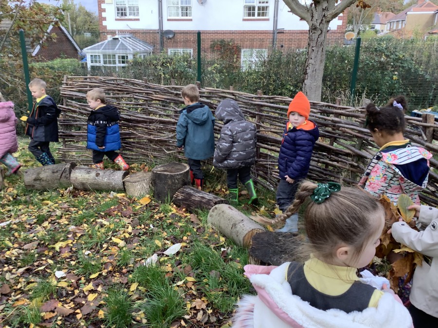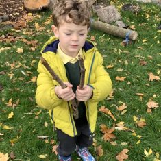 Teaching our children about the wonder of fire is an important part of Forest School life and is particularly relevant at this time of the year. We start with good safe practice entering and exiting the fire pit area. The children started practicing last term so this week they had a test session to see what they had remembered. They entered the fire-pit in a very orderly fashion and Miss Rowe was so impressed she challenged them to move onto the next stage, how to safely swap seats with someone without putting yourself at risk. The children executed this brilliantly, supporting each other and could explain why it’s so important not to cross the central fire area. The activity was carried out in groups so the adults could ensure each child was aware of the procedures. Once they had exited the fie pit they could explore or take part in an activity to create sparkler sticks. What a fun, sticky time we had. Whilst one group was in the fire-pit others enjoyed creating bouquets of leaves whilst others took part in an outdoor music session with Mrs Holt. A glorious afternoon of activities.