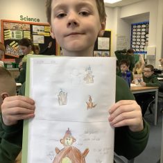 The children began by researching different types of puppets, watching videos and demonstrations of hand, rod, shadow and string/marionette puppets.  We have this week created our final designs, adding detail and labels to our drawings.