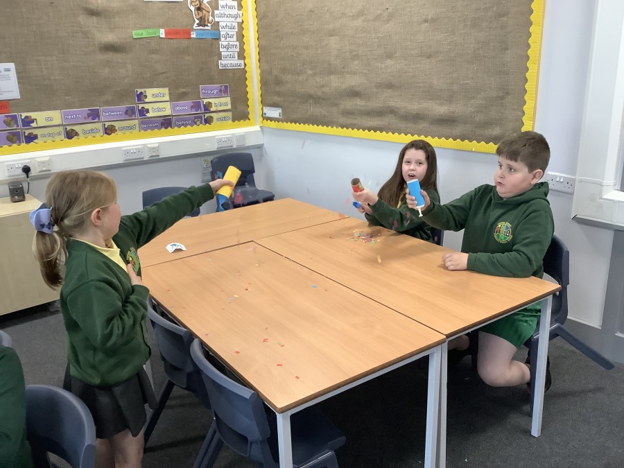 This week, the boys and girls in Year 3 were introduced to their new class text – The Firework-Maker’s Daughter by Phillip Pullman. They began by exploring clues, including a sparkler and an elephant, and shared their ideas about the type of text it might be and what it could be about. They eagerly unwrapped the book and were keen to add to their predictions based on the title and the front cover image. The boys and girls then had a brilliant time making their own colourful fireworks and setting them off within the classroom. Since then, they have enjoyed reading the first chapter and are intrigued to find out what treacherous Journey Lila will go on and whether she will, in the end, achieve her dream of becoming a fire-work maker herself.