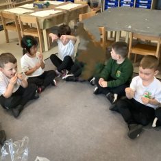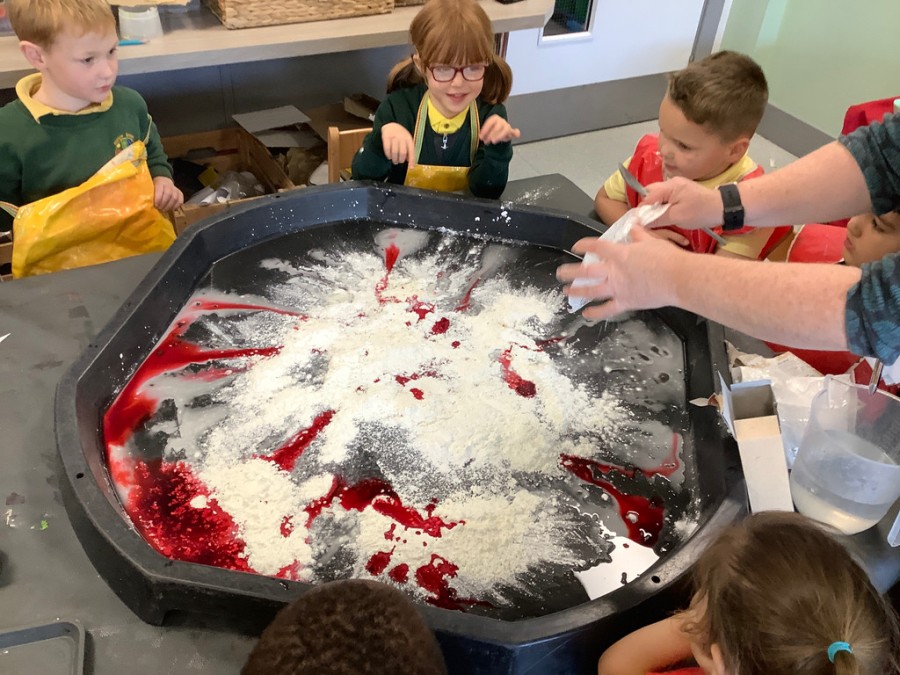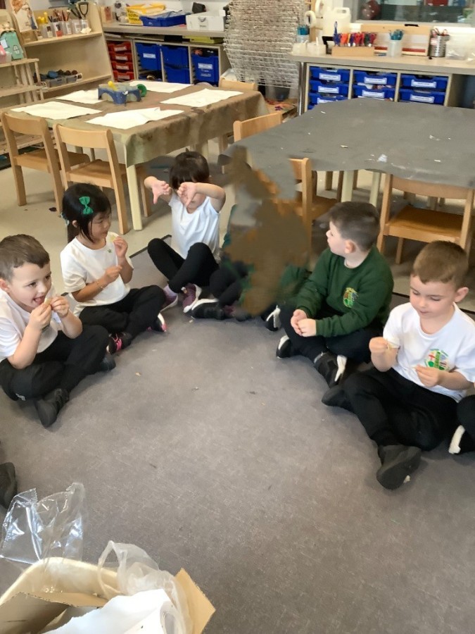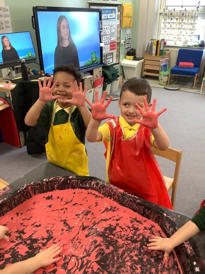 We began our learning journey by reading My Five Senses by Margaret Miller, a lovely book that introduced us to each of the senses in a simple and engaging way. To help us visualise the senses, we used Mr Potato Head, adding new body parts each day to represent the different senses including: eyes for sight, ears for hearing, a nose for smell, hands for touch, and a mouth for taste. Throughout the week, the children took part in a variety of exciting, hands-on activities. We played a “smell pots” game where we had to guess the different scents, and we used our listening skills to identify sounds in a “guess the sound” game. Our eyes were tested during a “what’s missing?” game with moving toys, encouraging us to observe closely and remember details. On our sensory walk, we explored textures in nature and used descriptive words to explain how things felt. One of the highlights was playing with gloop made from cornflour and water which was a fun, messy way to explore the sense of touch! We also created mini volcanoes using bicarbonate of soda and vinegar which was a wonderful way to engage multiple senses at once! To explore taste, we sampled a variety of fruits and vegetables, and had thoughtful discussions about our likes and dislikes. Through all of these activities, the children have deepened their understanding of their bodies and the world around them.