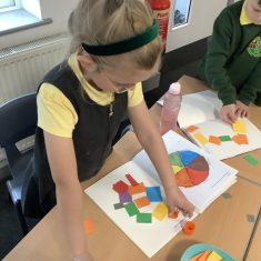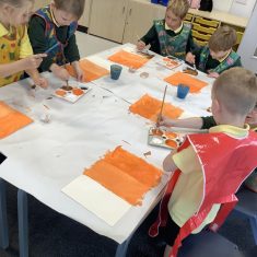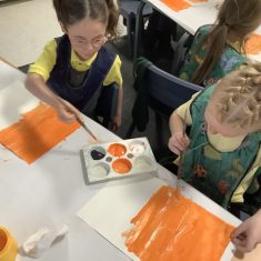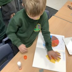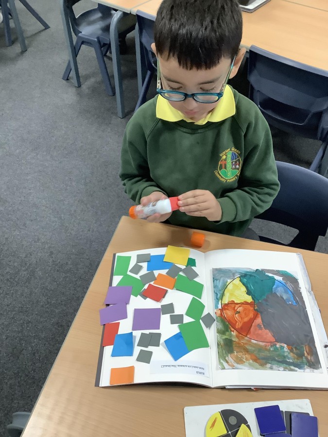 Next, the children learnt about Matisse. Matisse started creating art after he became ill. He started with painting but then progressed to collage which he called ‘painting with scissors’. The boys and girls were very surprised to discover how big Matisse’s work often was. The children looked at ‘The Snail’ and identified the primary and secondary colours in Matisse’s work before using a selection of coloured paper to create their own interpretations of his collage.