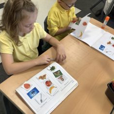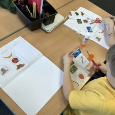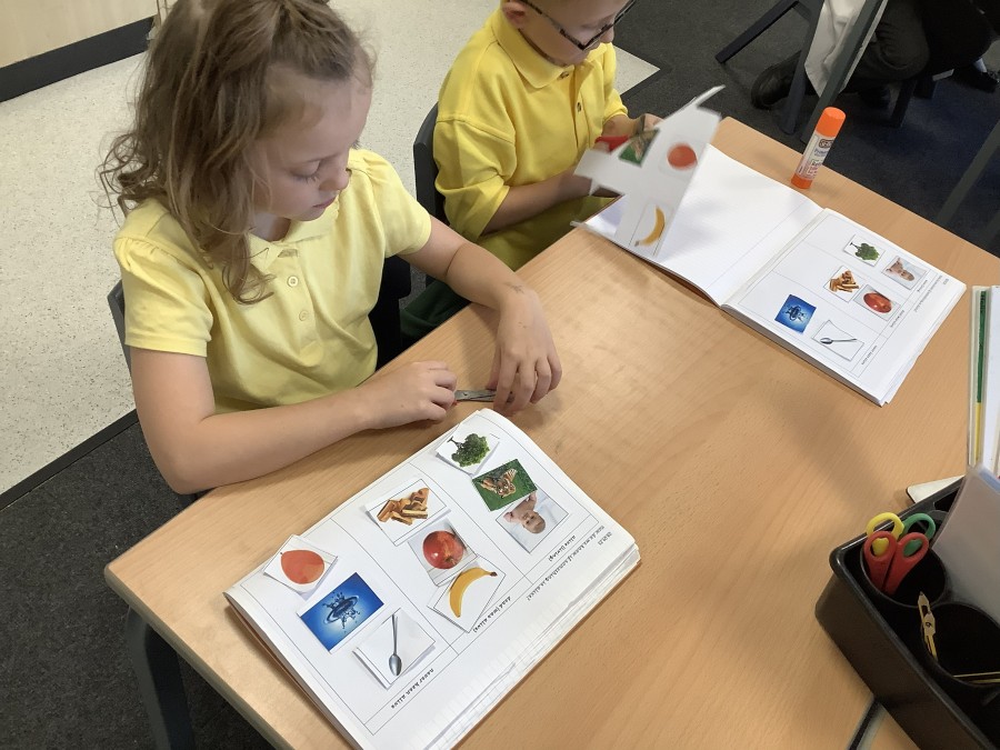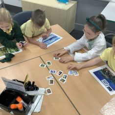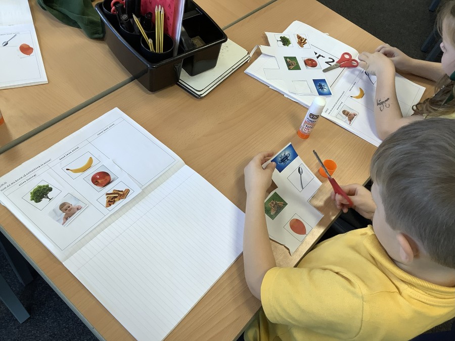 To begin, the children discussed whether something was alive, dead or had never been alive. They were able to identify living things from the life processes – grow, feed and move (etc.). They explored how plants are alive but show this in a different way to an animal or human. The boys and girls were intrigued to learn that when an apple is growing on a tree it is alive but, as soon as it is picked, it is then dead.