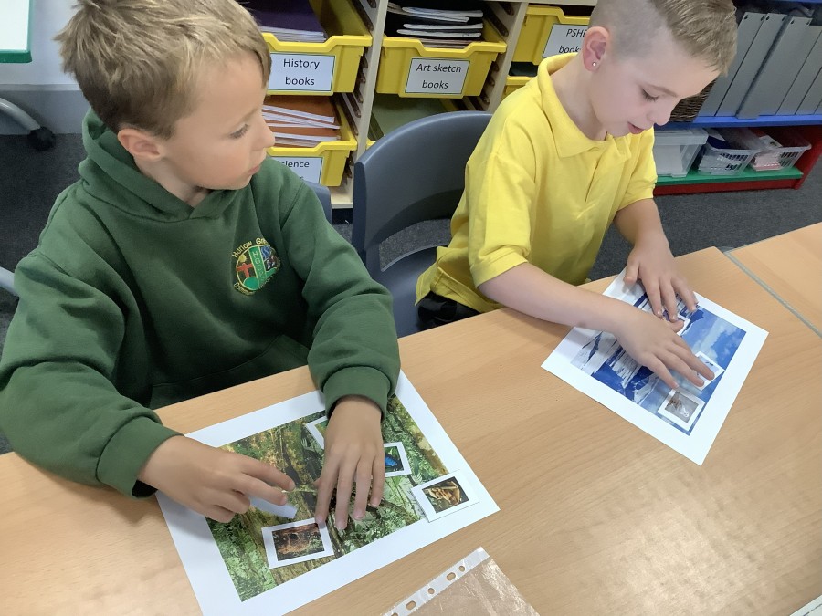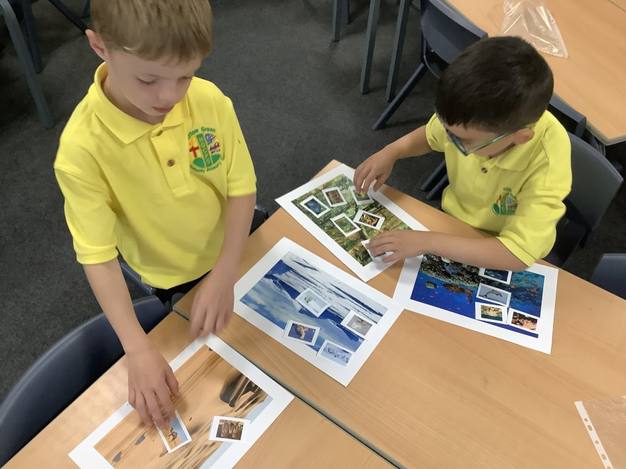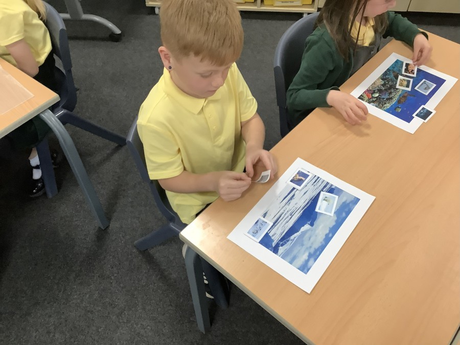 Next, Year Two learned about habitats (a place where an animal or plant lives). They looked in detail at four habitats – the desert, a rainforest, the Arctic and a polar habitat – and matched the animals that live there. They then discussed how an animal is adapted to live in a particular habitat. The children could explain that a polar bear has wide feet to walk on snow whereas a camel has wide feet to walk on sand.