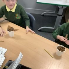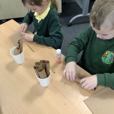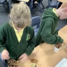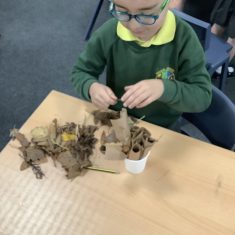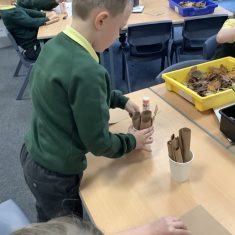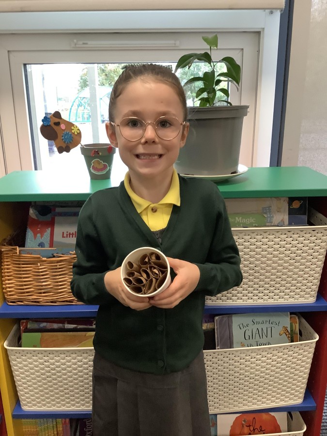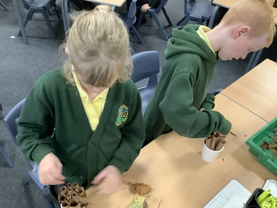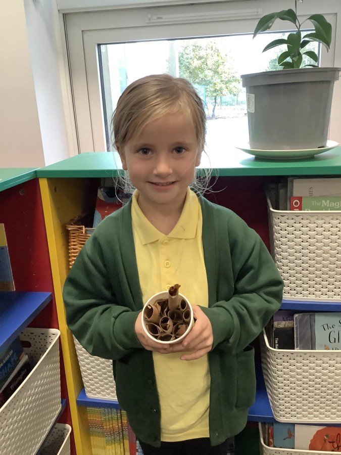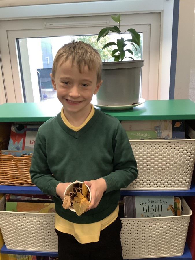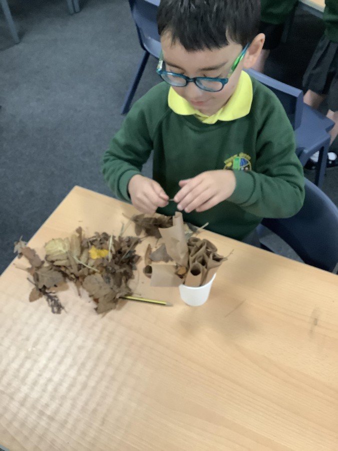 Finally, Year Two learned about microhabitats – a very small part of a habitat. They looked at minibeasts found under fallen leaves, in a rotten log and among grass. The children learned that some minibeasts can be found in more than one habitat. They then discussed what might happen to an animals’ habitat and what they could do to protect it. Using a paper cup, paper tubes and leaves, the children made a bug hotel perfect for any minibeasts in search of home.