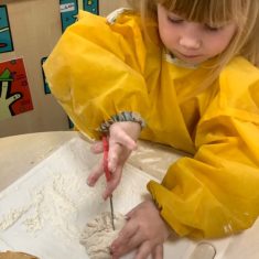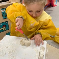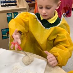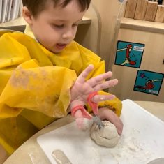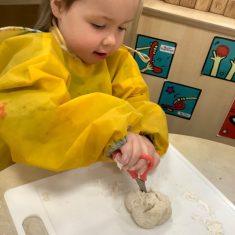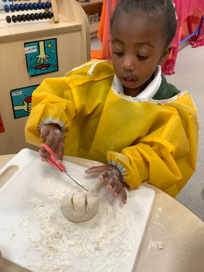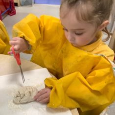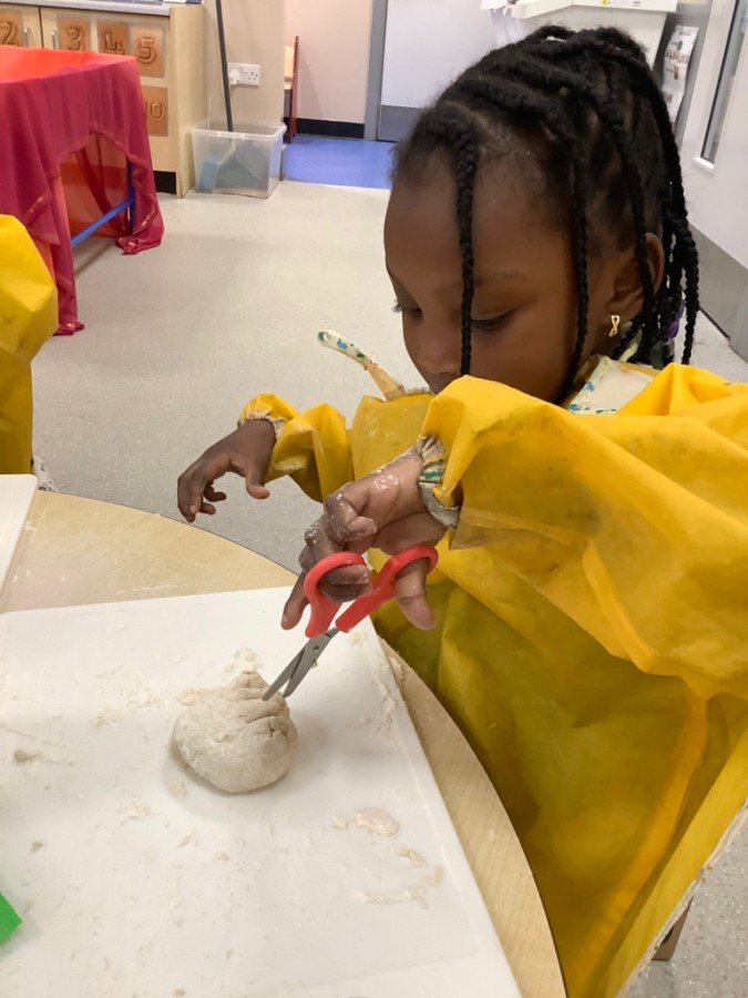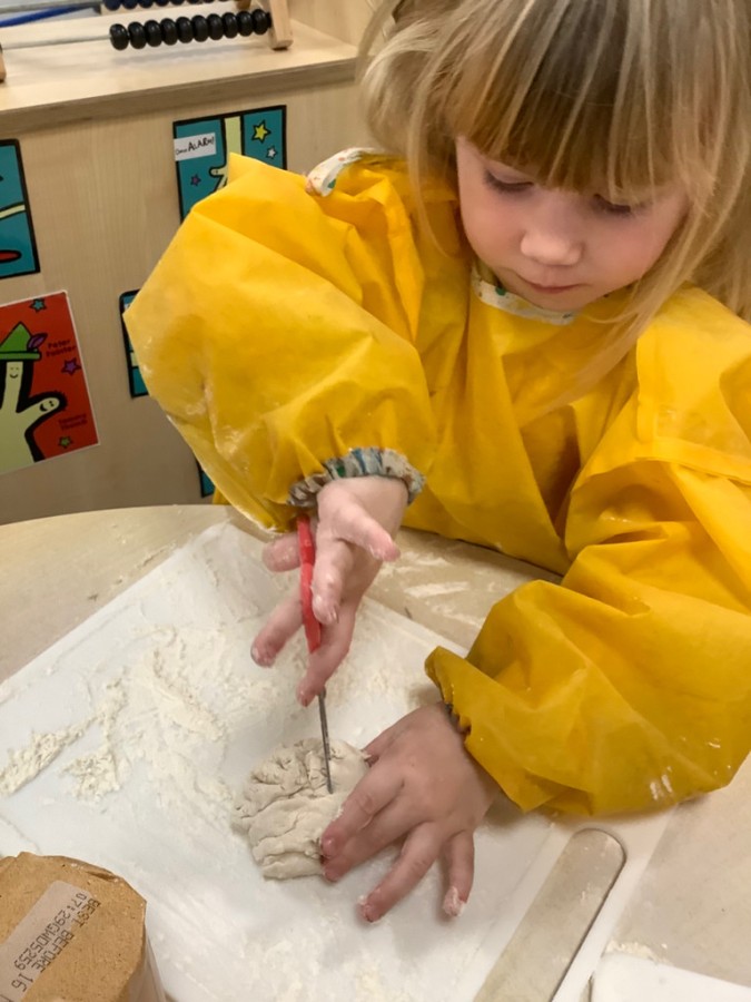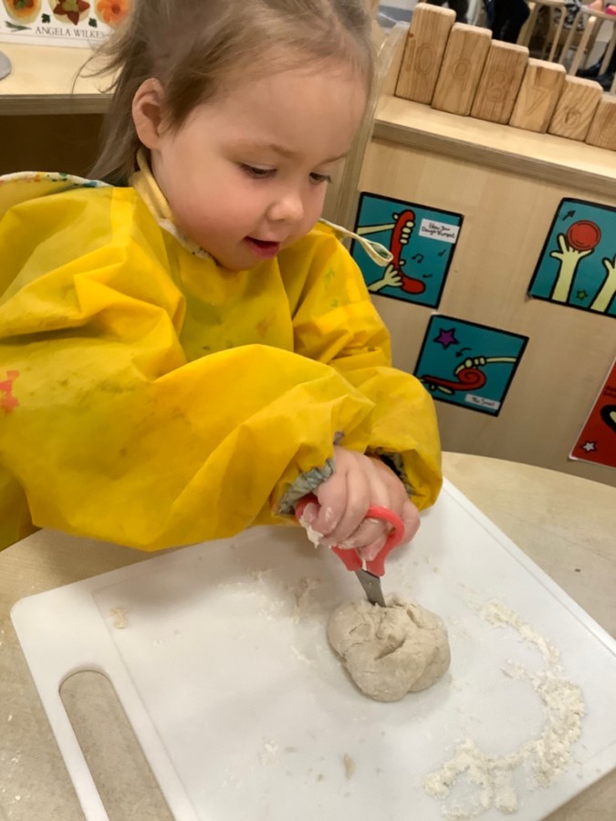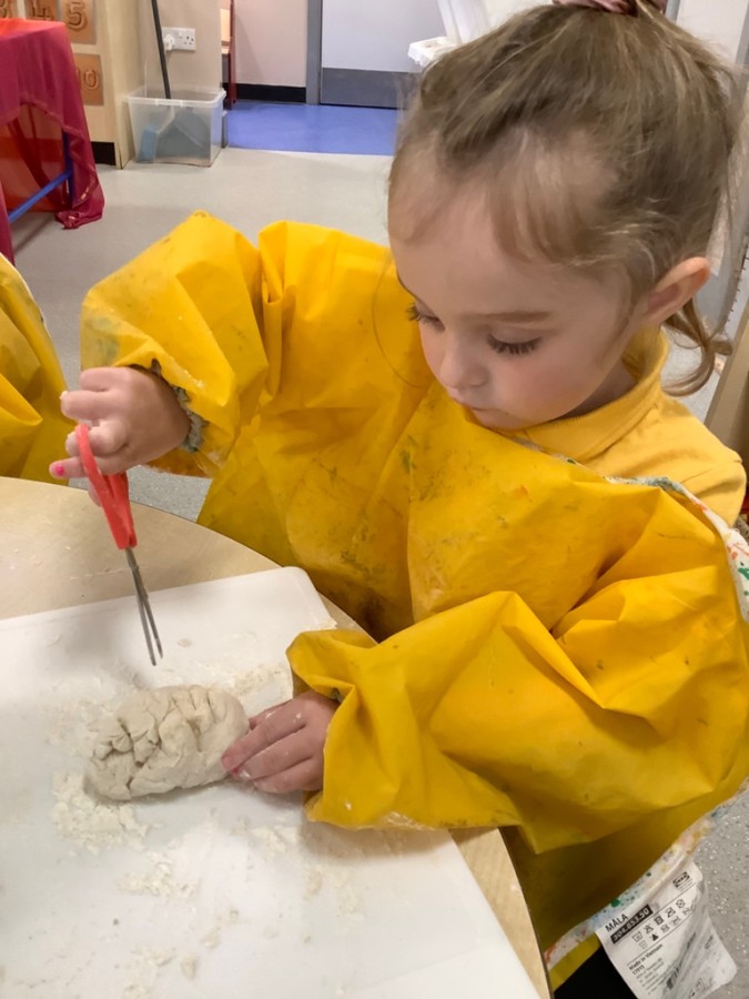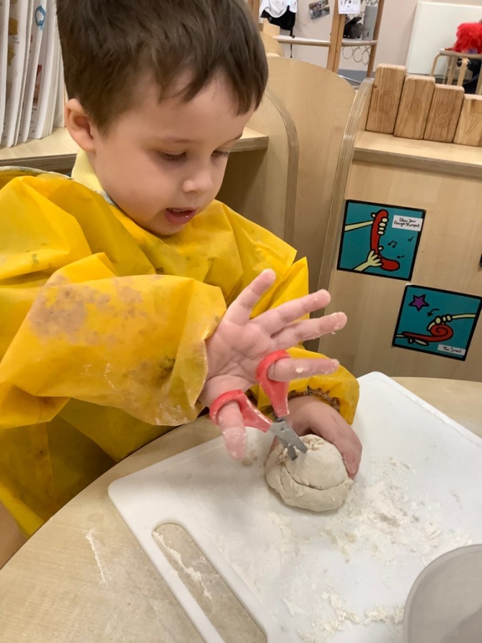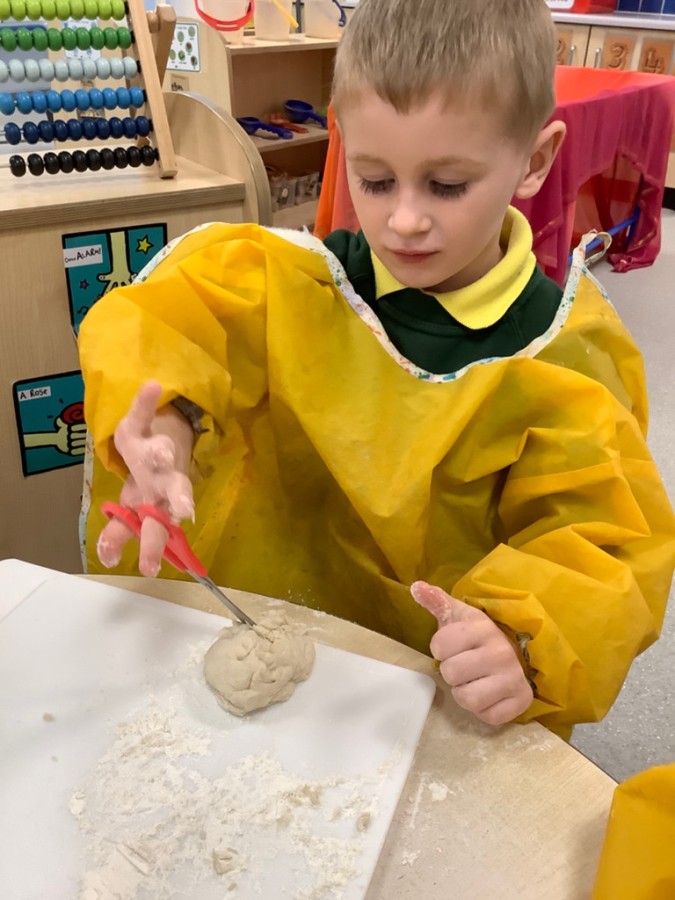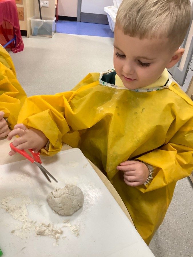 We also used our scissors during our baking activity this week to cut into our bread rolls to create hedgehog spines.
