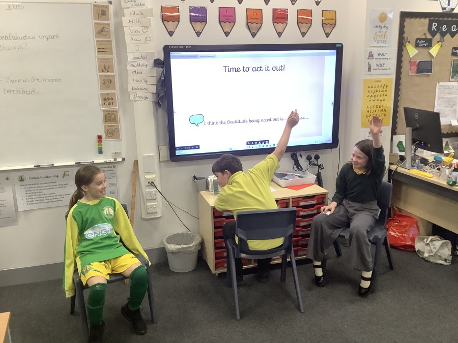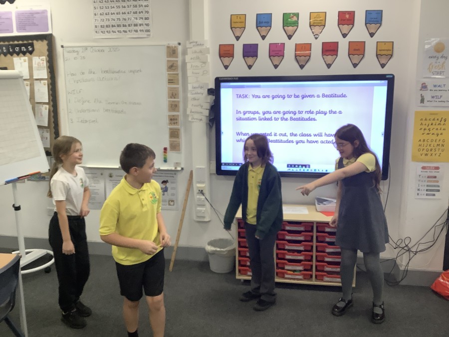 Next, we learned about the Eight Beatitudes from the Sermon on the Mount. Through role-play activities, the children acted out real-life scenarios, and their classmates had to guess which Beatitude was being shown. The children showed great empathy and understanding in exploring how these teachings encourage kindness, humility, and compassion.