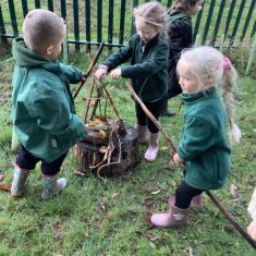 We have done this through exciting challenges, beginning with more structure which is based on the observations and collaborative work between learners and practitioners. This structure clearly demonstrates a progression of learning and establishes physical and behavioural boundaries. This enables more freedom to be given as these routines are embedded. Forest School uses natural resources for inspiration, to enable ideas and to encourage intrinsic motivation. Forest School programmes aim to develop, where appropriate, the physical, social, cognitive, linguistic, emotional and spiritual aspects of the learner.