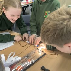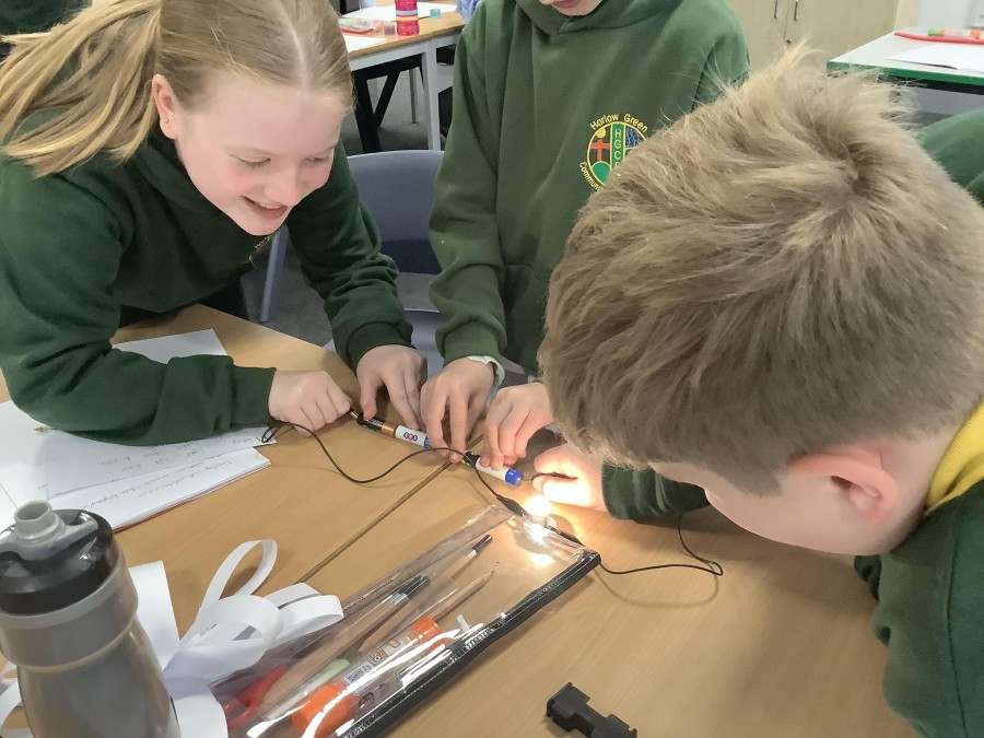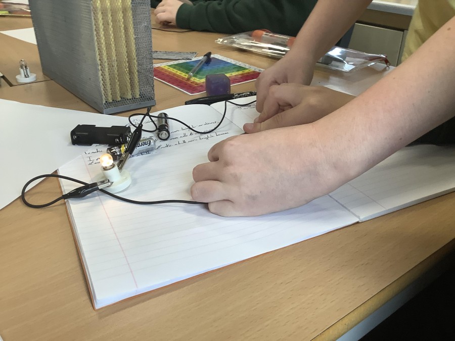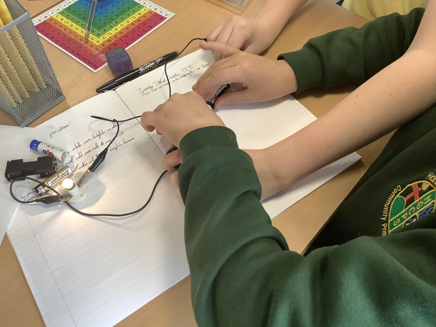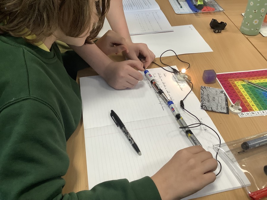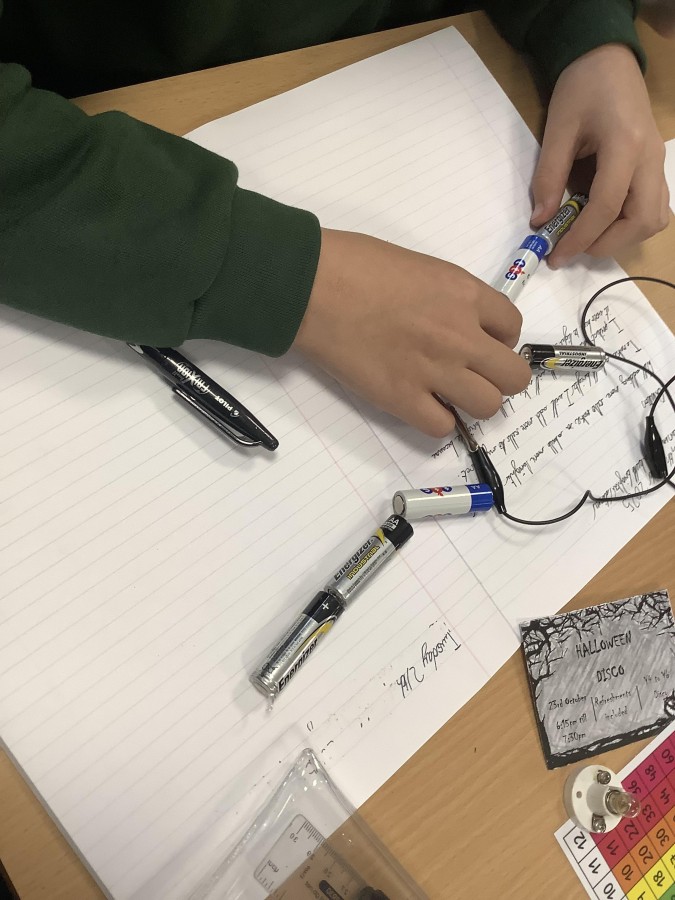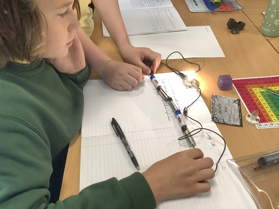 They were set the challenge of making a bulb brighter/dimmer in a circuit. Each group came up with a different idea – from adding more components to the circuit to adding more wires or cells. The children had to ensure that it was a fair test, so that they could generate results that were suitable to make a conclusion from. It was excellent to see the children collaborating in their groups and being able to understand and explain the science as to why the bulbs would change in each experiment.