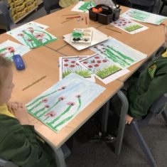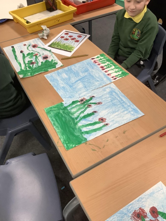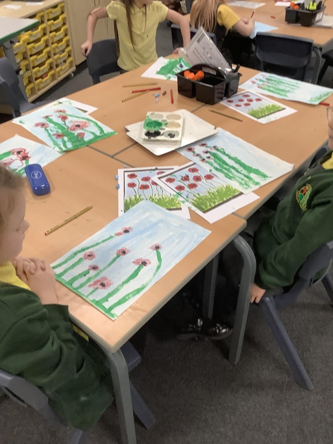 Tonight, at Mrs Chapman’s art club, after school, the Year 2 children created fields of poppies using paint and crayons. The pieces the children produced were extremely attractive and the children had a lovely time.