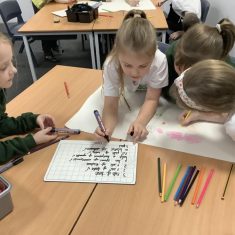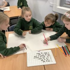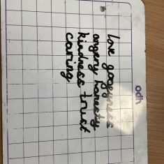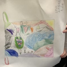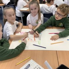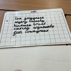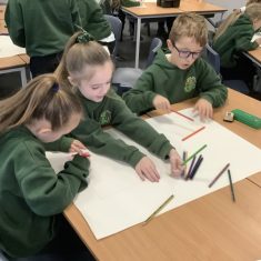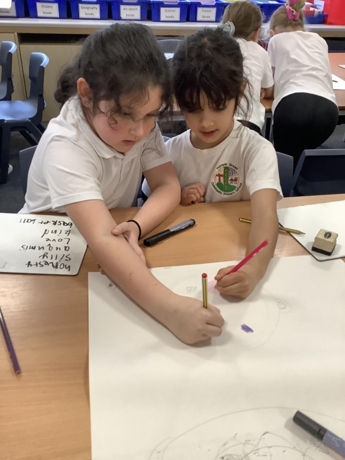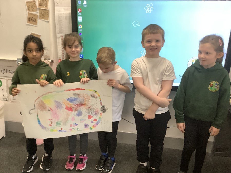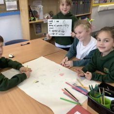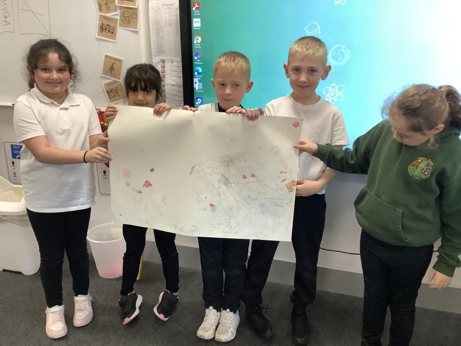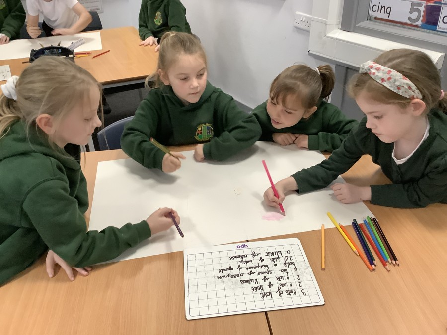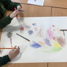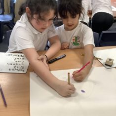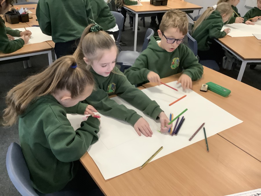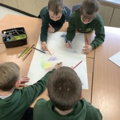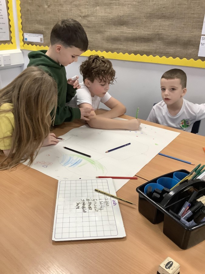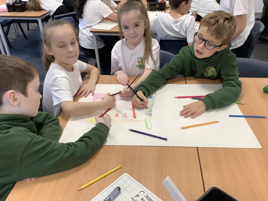 They then had to create their own recipe for friendship. Thinking carefully about what quantities they would need to get the right balance. Everyone on the team had to agree so that meant some discussion and negotiation. Once they had formulated their recipe they then had to draw it out deciding what shapes and colours they would use for each characteristic. Usually this is done outside using natural materials and some children used textures that related to things like pine cones, shiny leaves, fluffy seed pods etc. Others used emojis which made a really vivid design. One team decided to use a rainbow of colours to make their pan to represent all the wonderful things that friendship means to them, this really brought their design together.