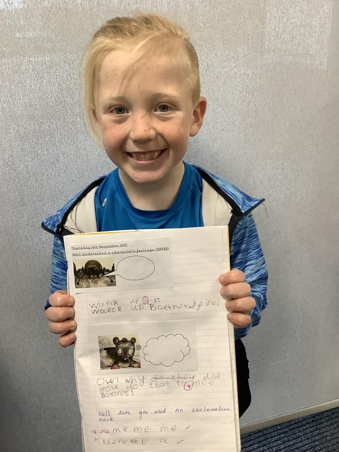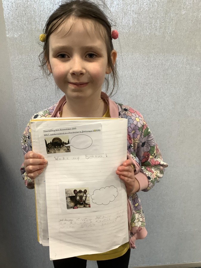 Next, the children looked more closely at the friendship between the two main characters. They identified that they were best friends because fleas live on rats, and they reflected on how the characters felt at different points in the story.