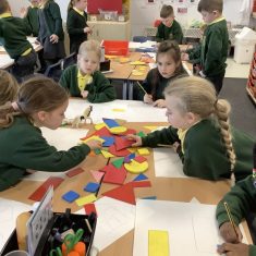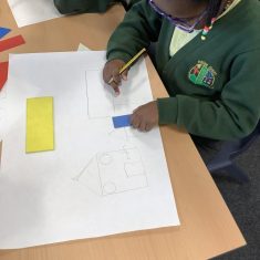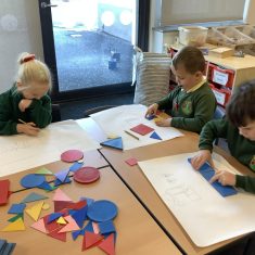 Finally, we completed the week with an investigation.  The children had a jumbled-up puzzle and they had to rearrange the parts to complete a picture of different 2D shapes.