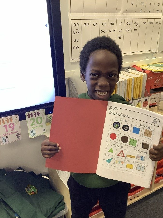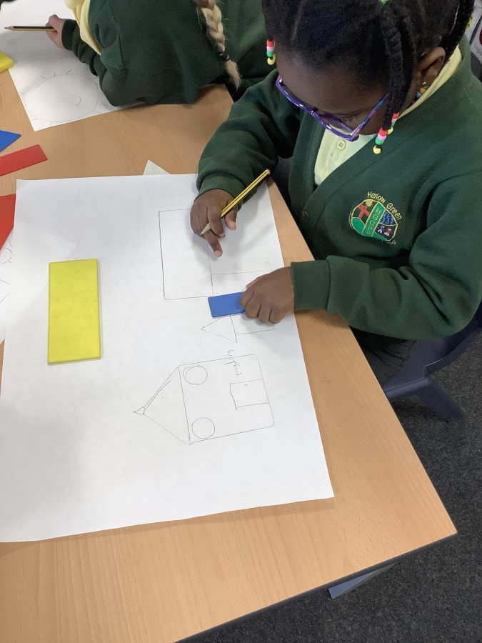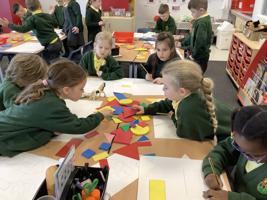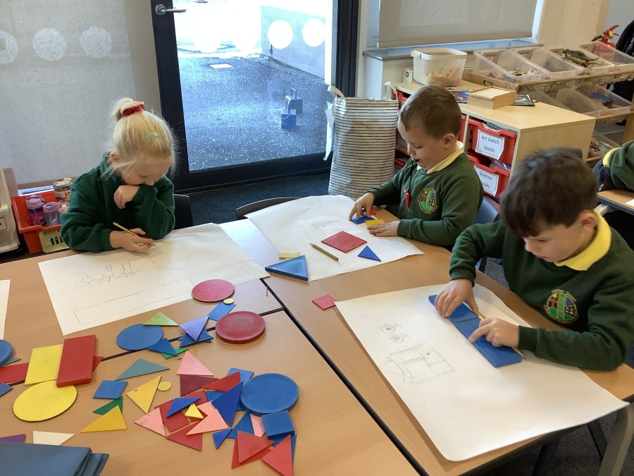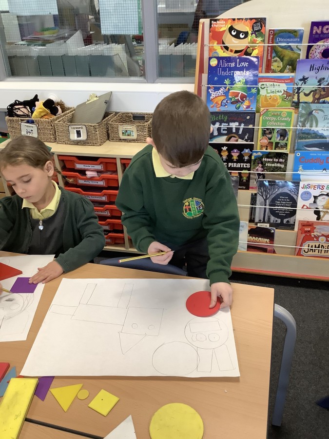 Finally, we completed the week with an investigation.  The children had a jumbled-up puzzle and they had to rearrange the parts to complete a picture of different 2D shapes.
