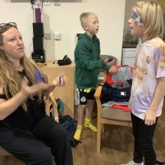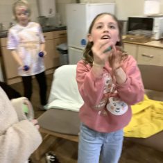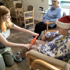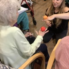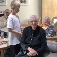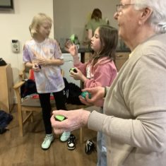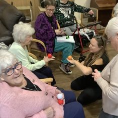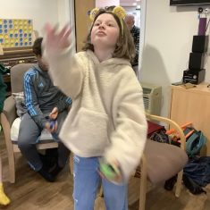 As part of a Sports England Project we are working with our friends, the residents of Angel Court, in physical workshops. These incorporate strength building and movement to increase flexibility, balance, confidence and social connections for health and wellbeing. We have seen firsthand the impact that grief and long-term health conditions can have on people’s physical mobility and their willingness to want to come down to the lounge and join others. But equally we know the difference taking part in regular, meaningful workshops can have in encouraging people back to a social activity. The children are so happy to support the group to help them to engage in accessible movement and physical activities together, sharing ideas and having a sense of working fun.