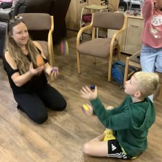 This week they continue to practice their juggling skills, then worked on balance using the balls and feathers, with some nice relaxing massage to finish off. One of our team is becoming quite the expert.