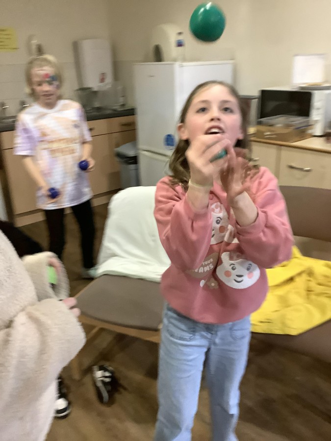 This week they continue to practice their juggling skills, then worked on balance using the balls and feathers, with some nice relaxing massage to finish off. One of our team is becoming quite the expert.