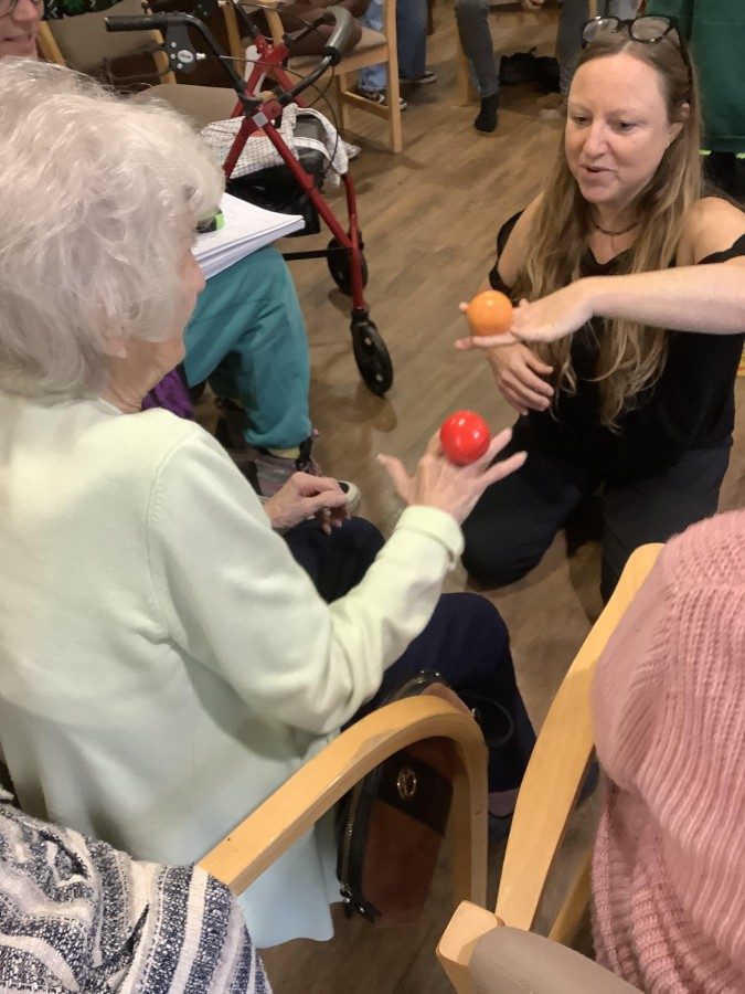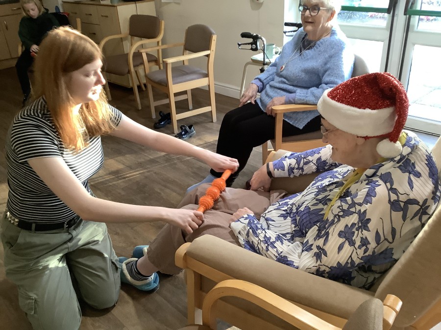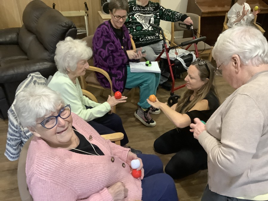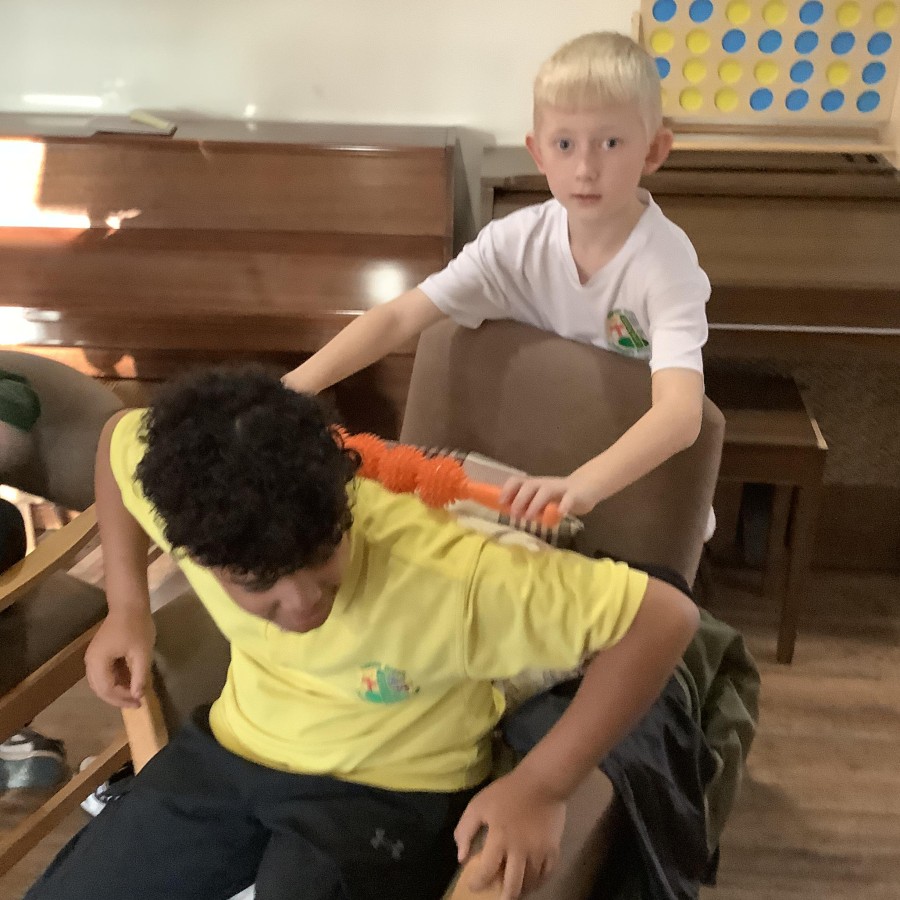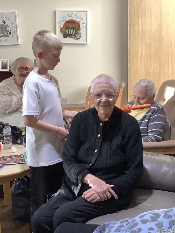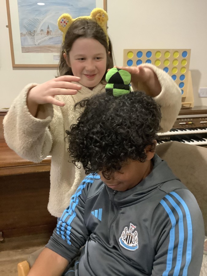 As part of a Sports England Project we are working with our friends, the residents of Angel Court, in physical workshops. These incorporate strength building and movement to increase flexibility, balance, confidence and social connections for health and wellbeing. We have seen firsthand the impact that grief and long-term health conditions can have on people’s physical mobility and their willingness to want to come down to the lounge and join others. But equally we know the difference taking part in regular, meaningful workshops can have in encouraging people back to a social activity. The children are so happy to support the group to help them to engage in accessible movement and physical activities together, sharing ideas and having a sense of working fun.