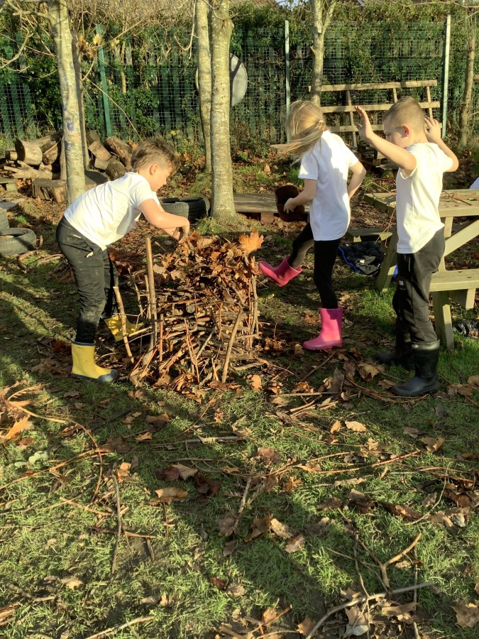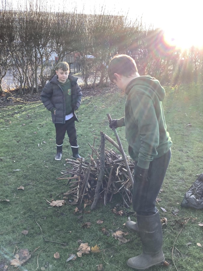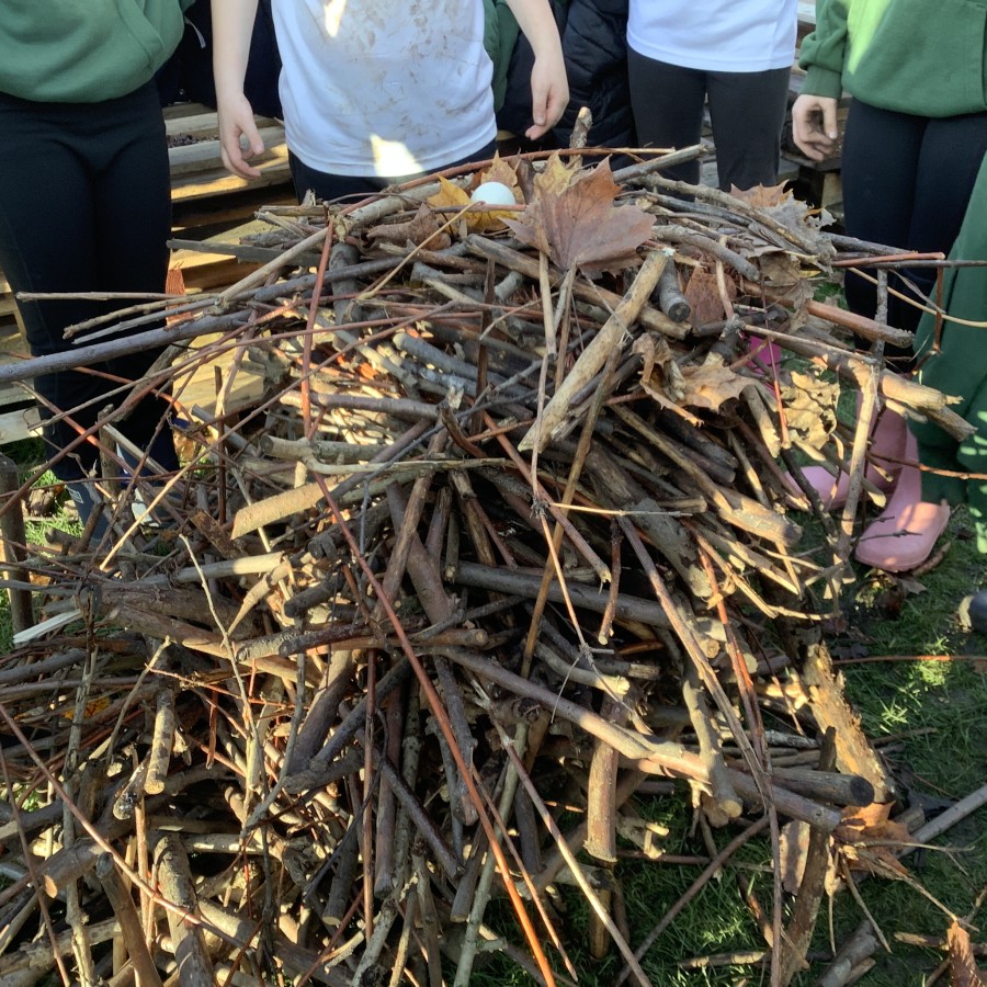 This weeks task: to work successfully with your team to create a tower of sticks. The rules: it must be free standing, no ties or string, for younger children only short sticks, for the older ones they could use long ones too. The tower had to be able to hold an egg for 10 seconds. They had planning time before they began and as you can see the children threw themselves into this. There was a nice feeling of gentle competitiveness, the collaboration was really visible. Remember this term groups have been set by the adults, this can often add pressure but the children have really embraced working with new people and were really proud of the results.