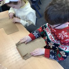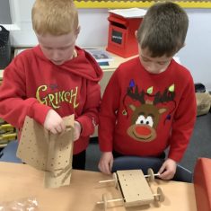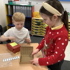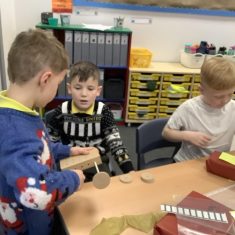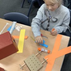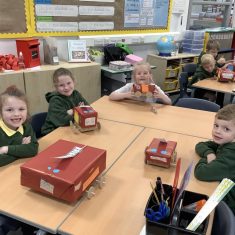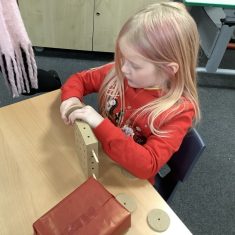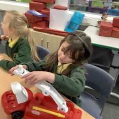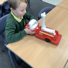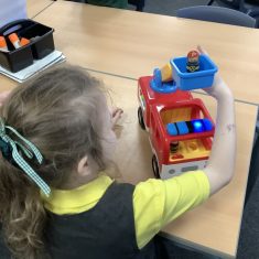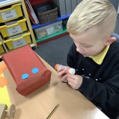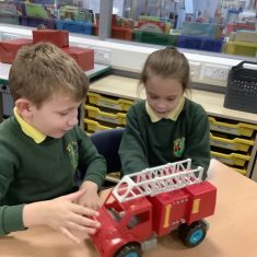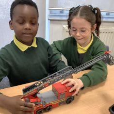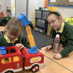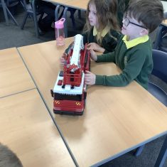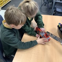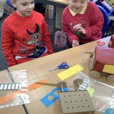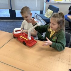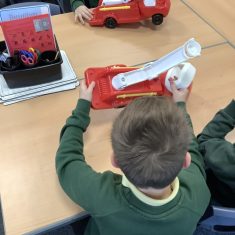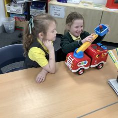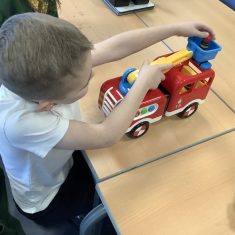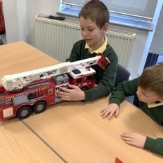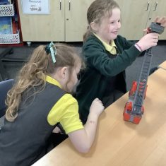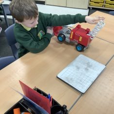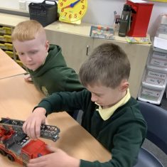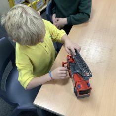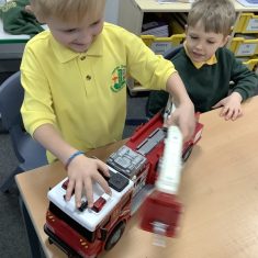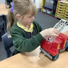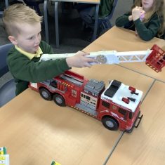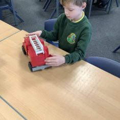The children in Year 2 have been working hard to design and make their own fire engines. Firstly, they looked at some toy fire engines and talked about the features, describing which ones they liked and also providing reasons why. They enjoyed drawing their own engines and labelling features such as the ladder, wheels, hose and light. They also found out about specific parts that help the vehicle to move, in particular the chassis and the axle. The children were given their own cardboard chassis to build into a cuboid and then they attached two wooden axles and four wheels. Then, there was an opportunity to get creative to add the hose, windows and lights using glue, scissors and different coloured paper. Finally, the boys and girls added a wind up mechanism using a short length of doweling and some string to make the ladder move up and down. Well done!