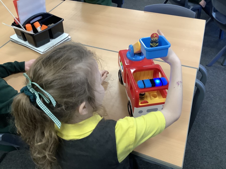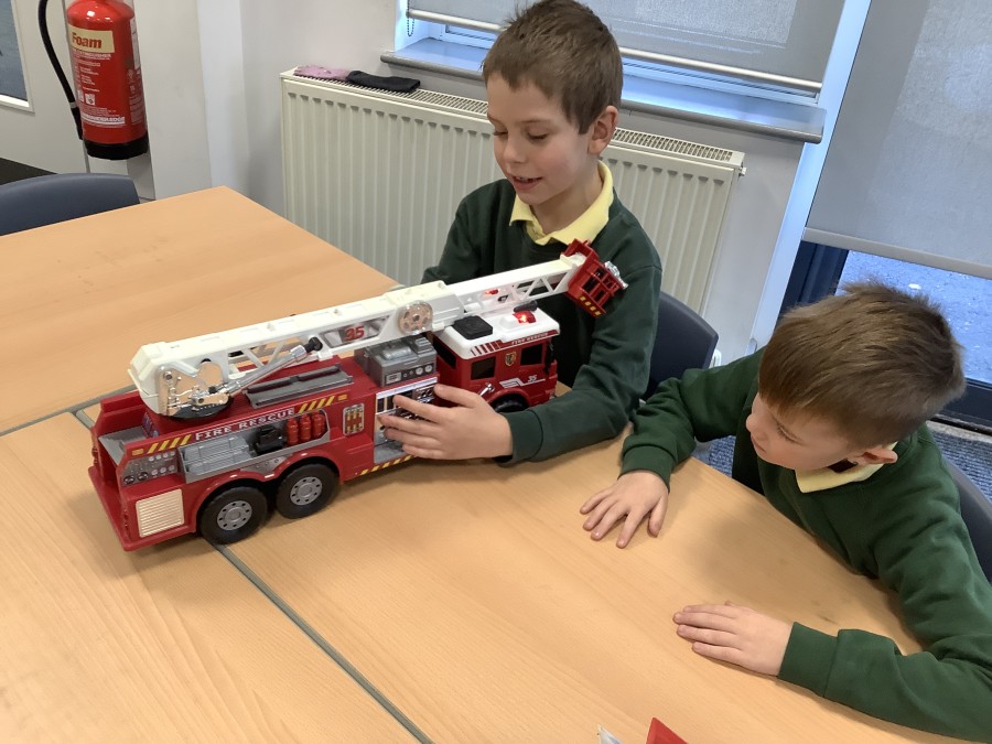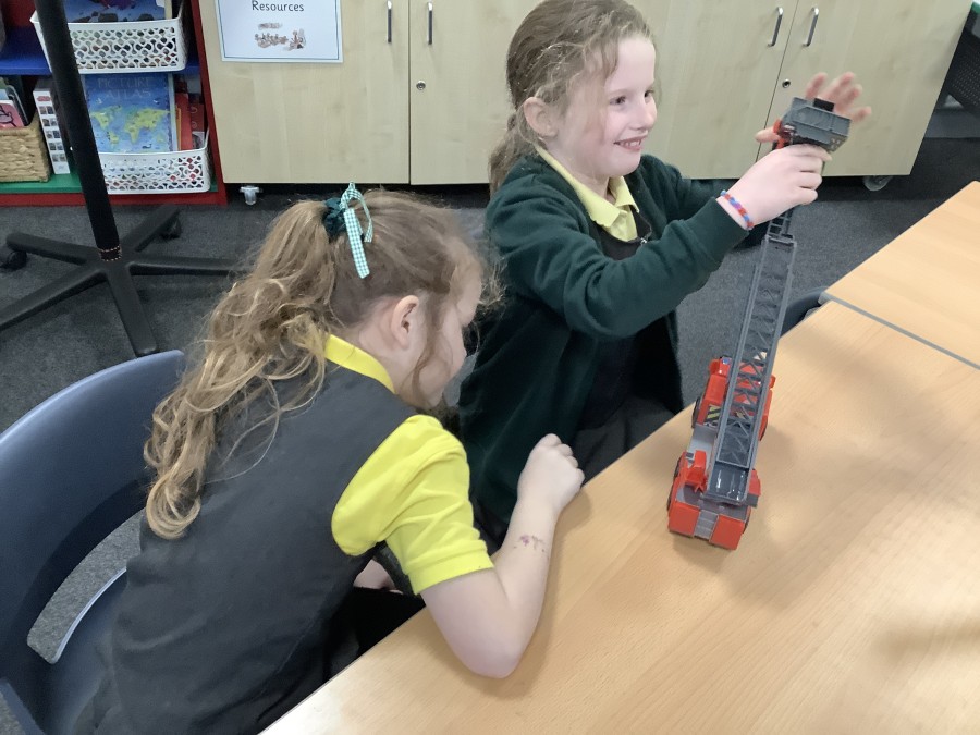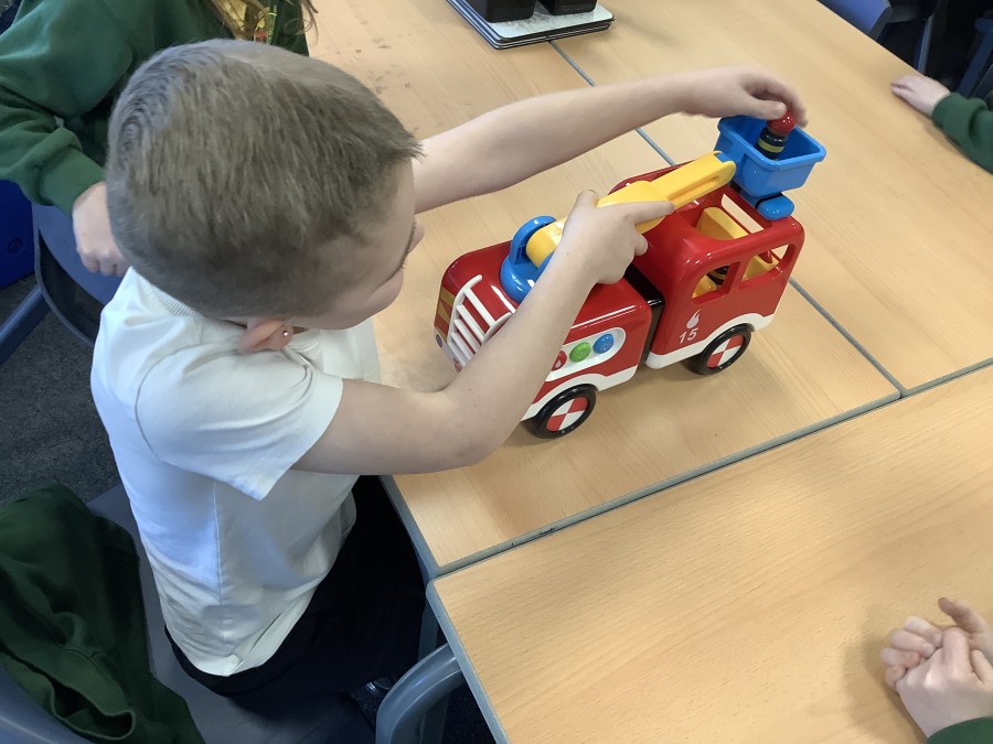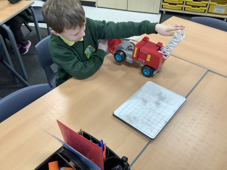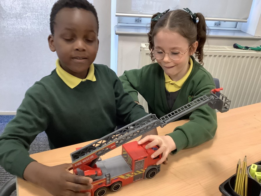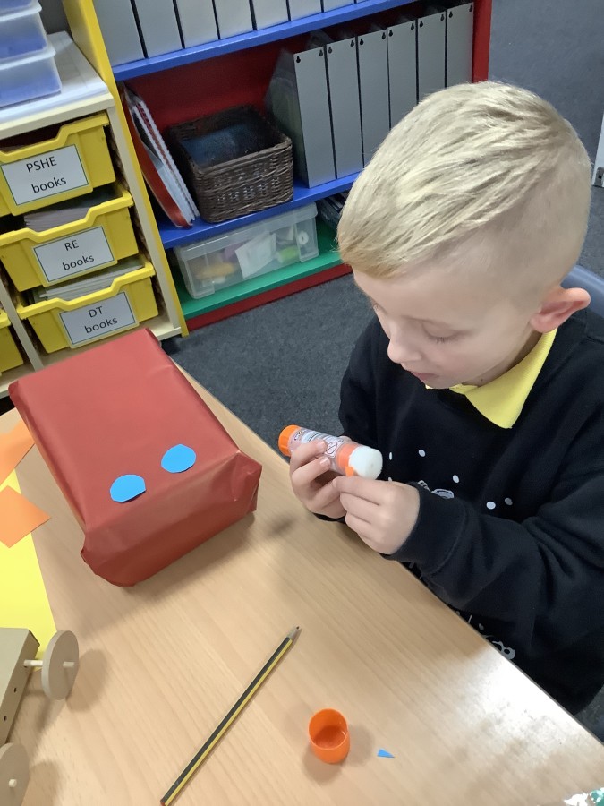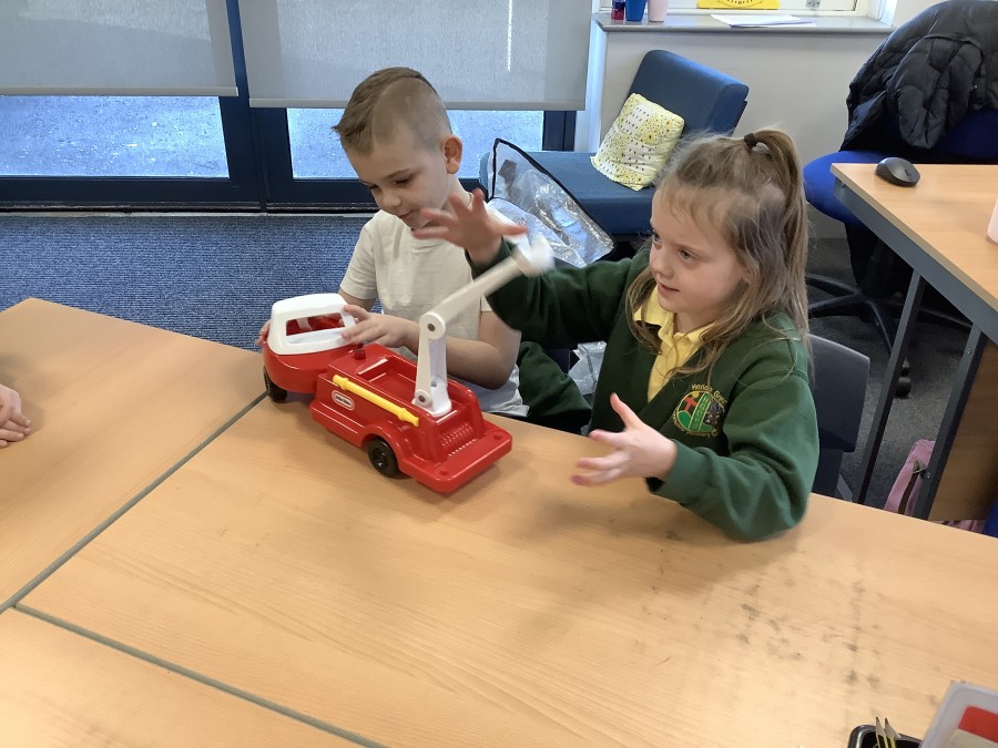 The children in Year 2 have been working hard to design and make their own fire engines. Firstly, they looked at some toy fire engines and talked about the features, describing which ones they liked and also providing reasons why. They enjoyed drawing their own engines and labelling features such as the ladder, wheels, hose and light. They also found out about specific parts that help the vehicle to move, in particular the chassis and the axle. The children were given their own cardboard chassis to build into a cuboid and then they attached two wooden axles and four wheels. Then, there was an opportunity to get creative to add the hose, windows and lights using glue, scissors and different coloured paper. Finally, the boys and girls added a wind up mechanism using a short length of doweling and some string to make the ladder move up and down. Well done!