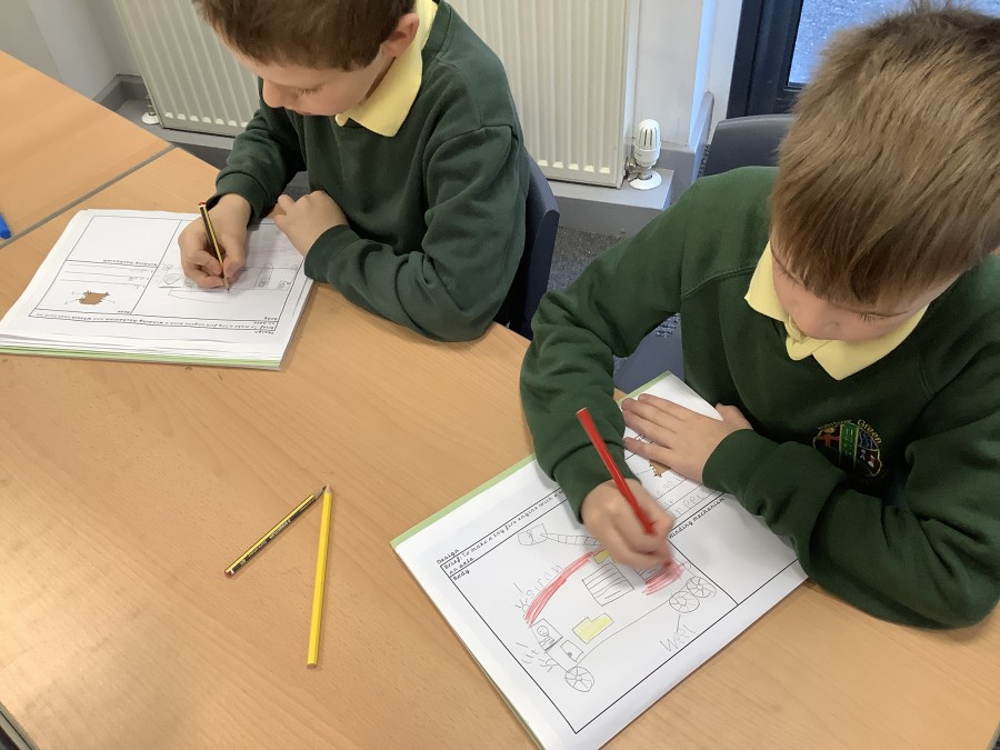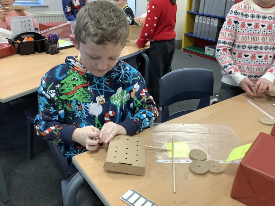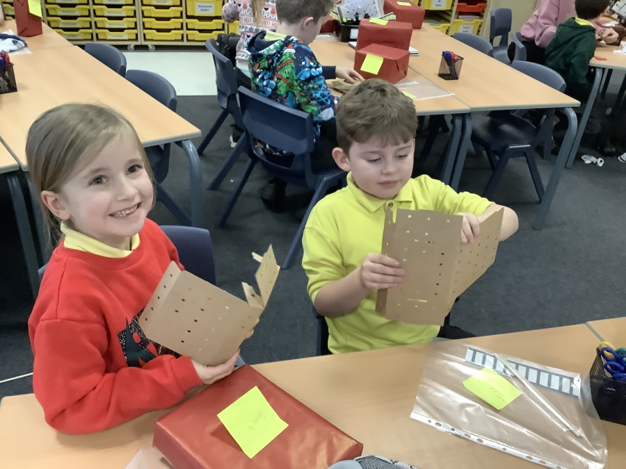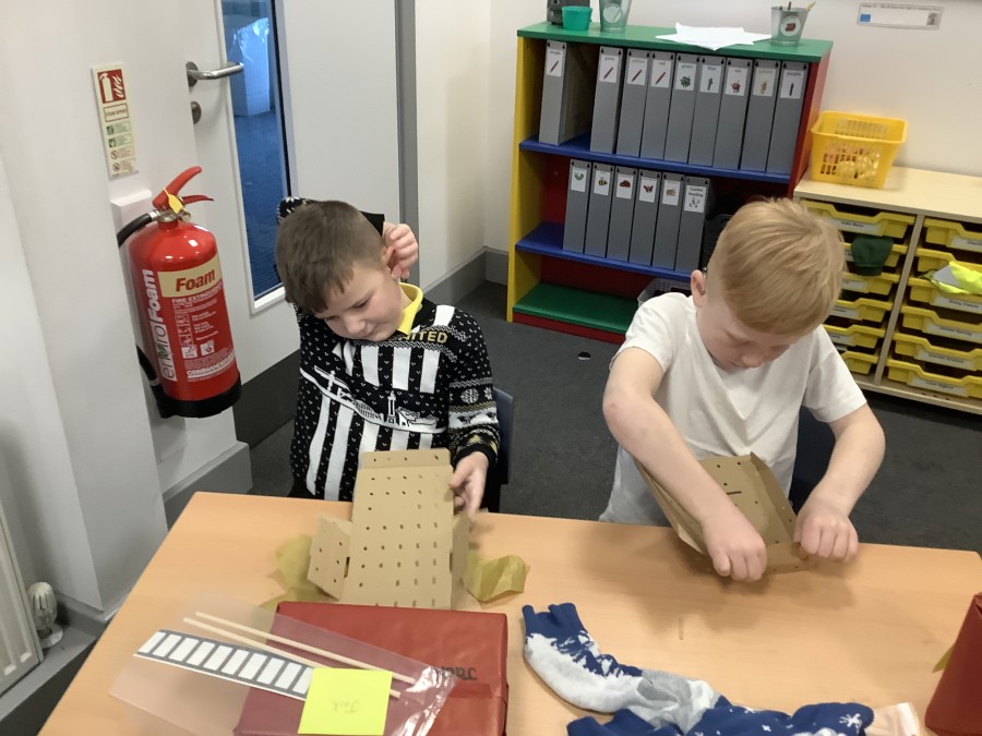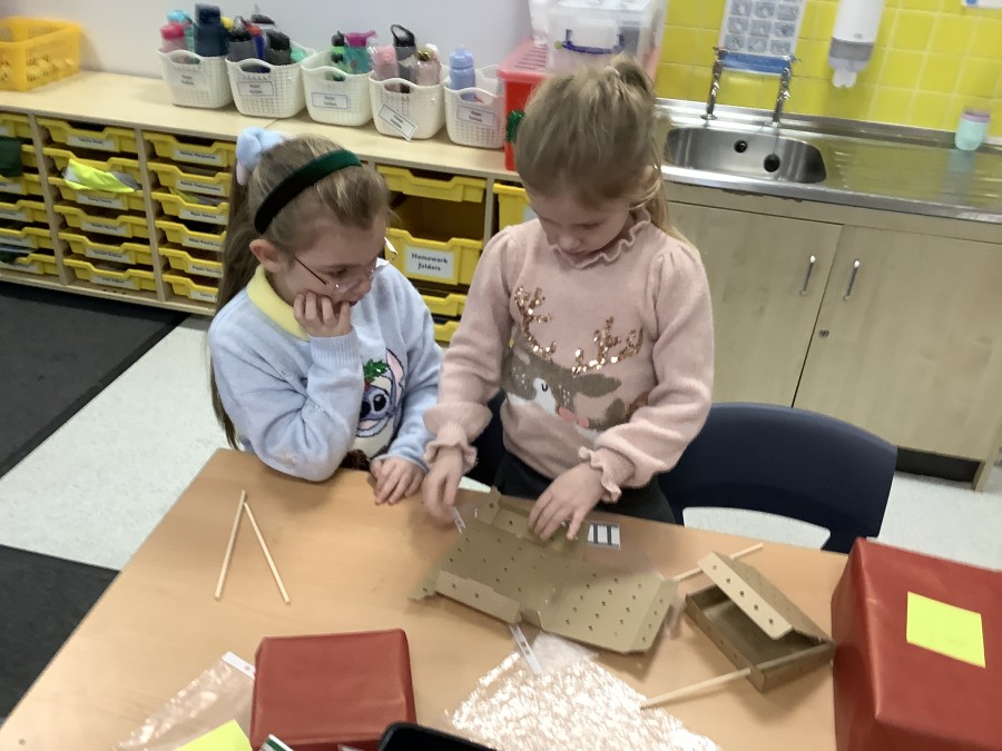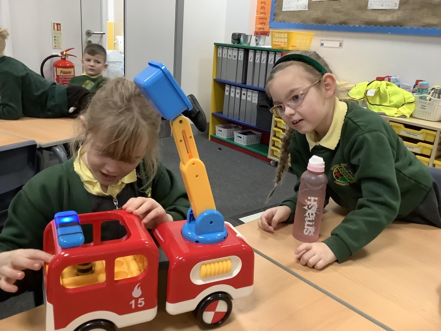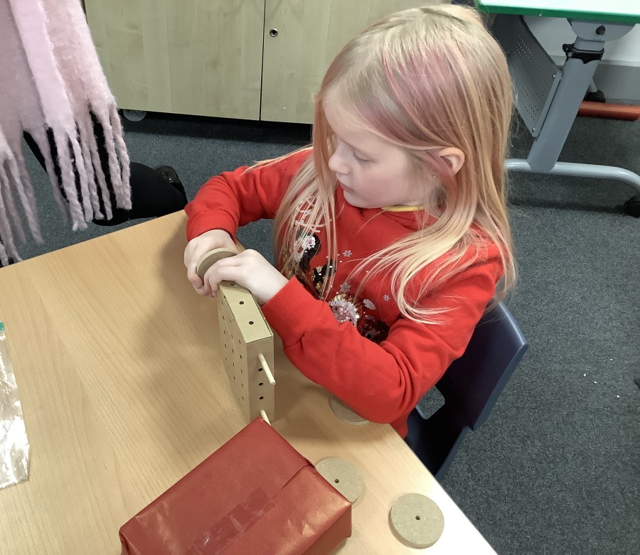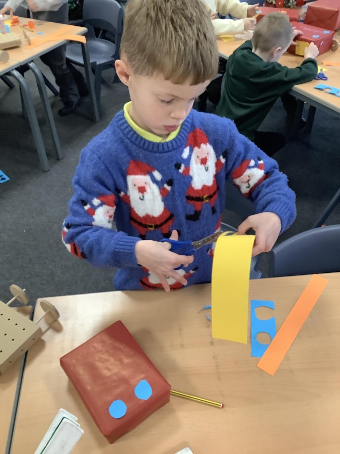 The children in Year 2 have been working hard to design and make their own fire engines. Firstly, they looked at some toy fire engines and talked about the features, describing which ones they liked and also providing reasons why. They enjoyed drawing their own engines and labelling features such as the ladder, wheels, hose and light. They also found out about specific parts that help the vehicle to move, in particular the chassis and the axle. The children were given their own cardboard chassis to build into a cuboid and then they attached two wooden axles and four wheels. Then, there was an opportunity to get creative to add the hose, windows and lights using glue, scissors and different coloured paper. Finally, the boys and girls added a wind up mechanism using a short length of doweling and some string to make the ladder move up and down. Well done!