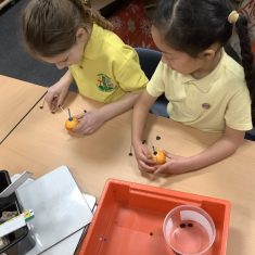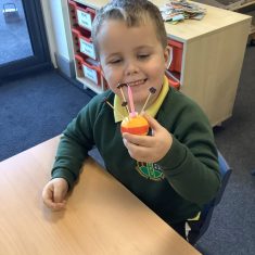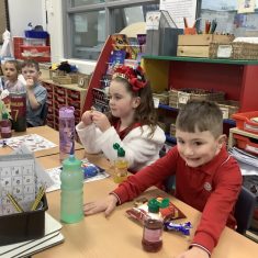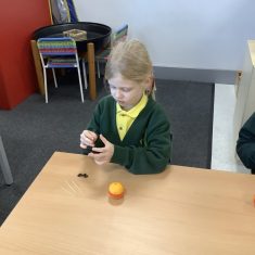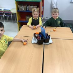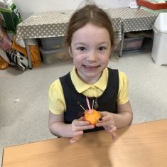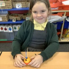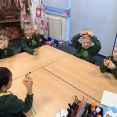 They had great fun at their Christmas party, playing traditional games such as pass the parcel, musical statues and Christmas corners. In addition, they enjoyed eating party food and watching an online pantomime of Cinderella. The children have also enjoyed making a Christmas card to give to their families as well as a Christmas bauble decoration. Earlier the children learnt about Christingles and their meaning at Christmas time. They enjoyed making a Christingle with Reverend Elaine from St Ninians Church.