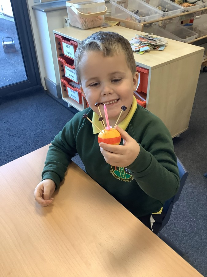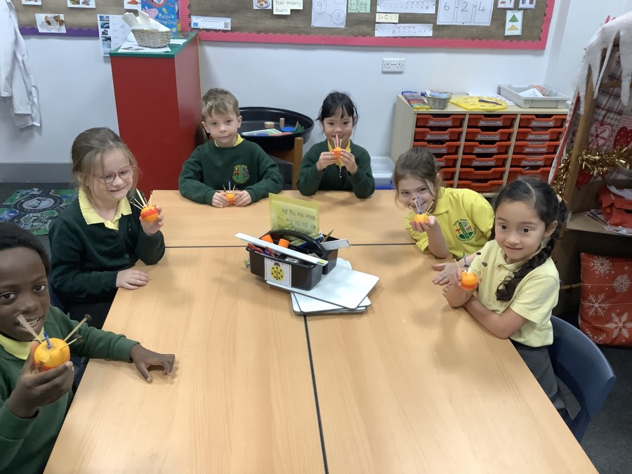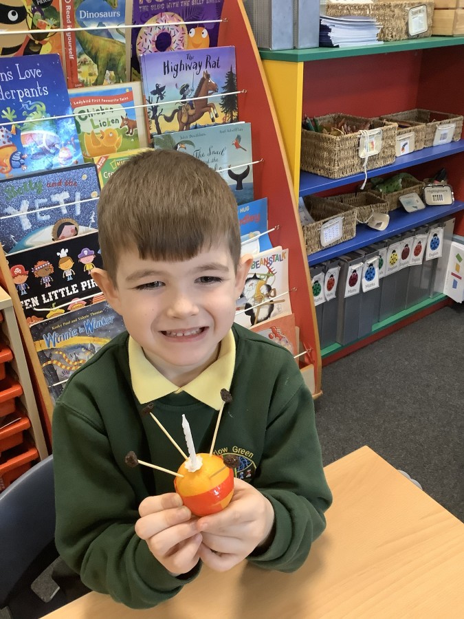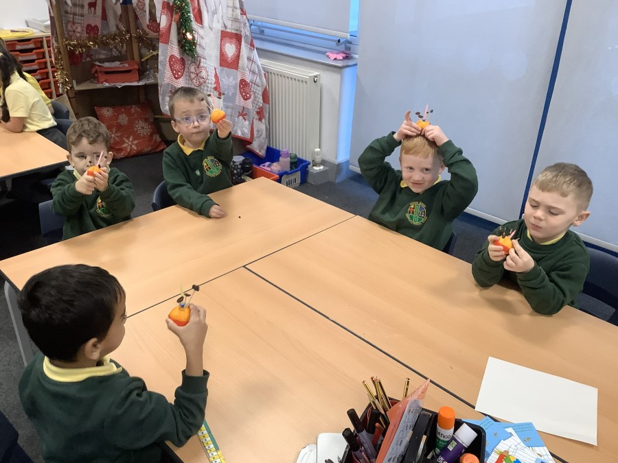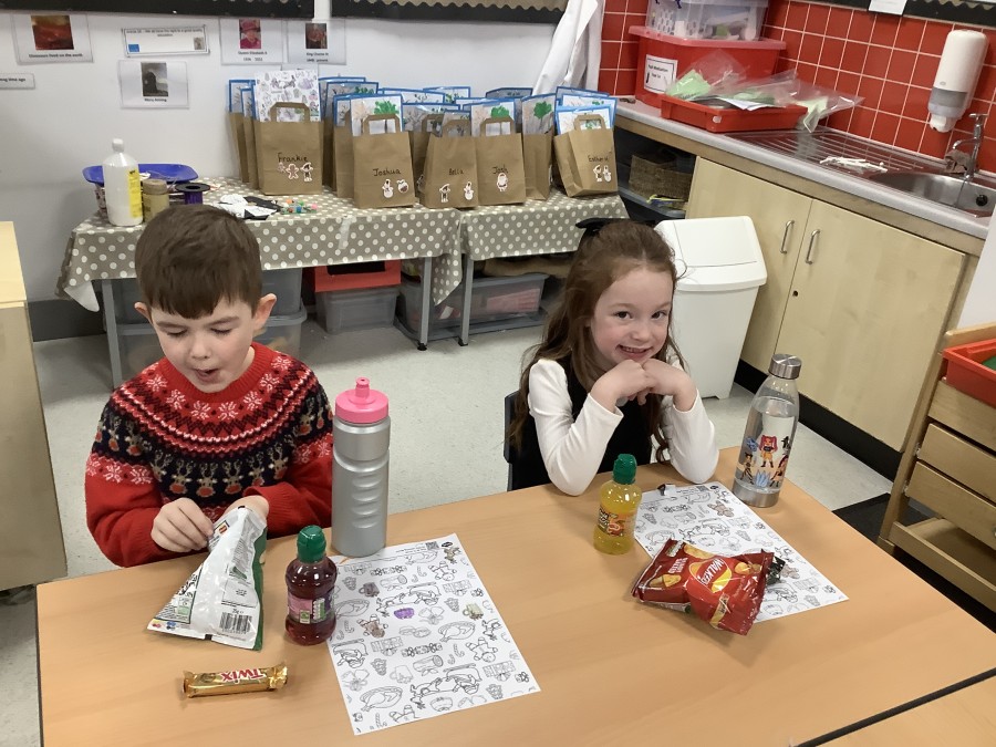 They had great fun at their Christmas party, playing traditional games such as pass the parcel, musical statues and Christmas corners. In addition, they enjoyed eating party food and watching an online pantomime of Cinderella. The children have also enjoyed making a Christmas card to give to their families as well as a Christmas bauble decoration. Earlier the children learnt about Christingles and their meaning at Christmas time. They enjoyed making a Christingle with Reverend Elaine from St Ninians Church.