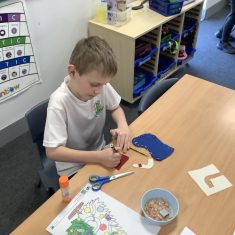 Once their stockings were assembled, the children decorated the front with wonderful Christmas images such as Santa, Christmas trees, snowmen and penguins. They used a range of materials including felt, sequins, coloured pens, pompoms and cotton wool to bring their designs to life.