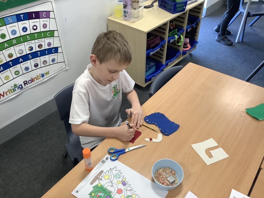 Year 3 have been busy getting festive with their Design and Technology project by making their own Christmas stockings! The children showed great perseverance as they learned how to use a running stitch to carefully join two pieces of felt together. It wasn’t always easy, but they kept trying and were very proud of their progress.