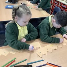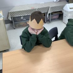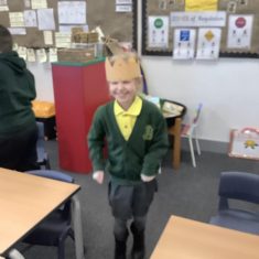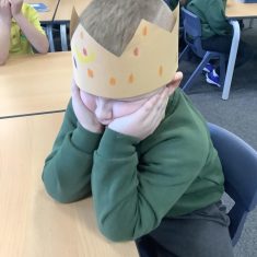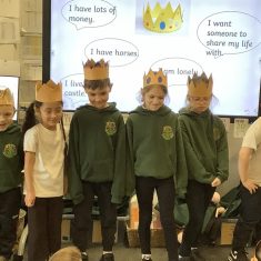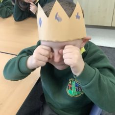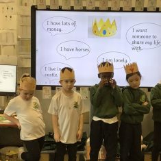 We began by playing a memory game where we looked at different objects to help us predict what the story was going to be about. The pupils looked at a princess, a prince, a crown, a castle, a pea and a bed. The children used these clues to guess what the story was going to be about. After this, the pupils made a crown for the prince. We acted out parts of the story. Sometimes we pretended to be handsome and proud of all our possessions. Other times, we pretended to be lonely and miserable, as all the prince wanted was a real princess. The children had so much fun and we discovered some brilliant actors and actresses.