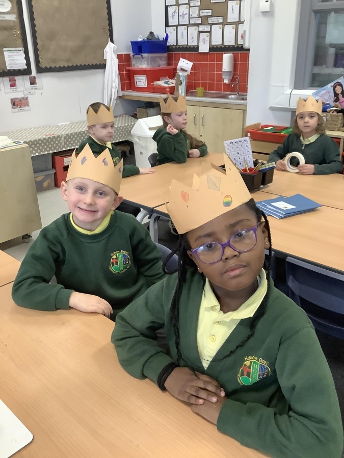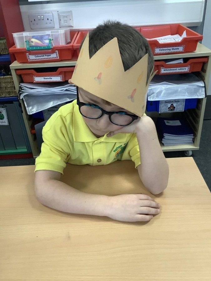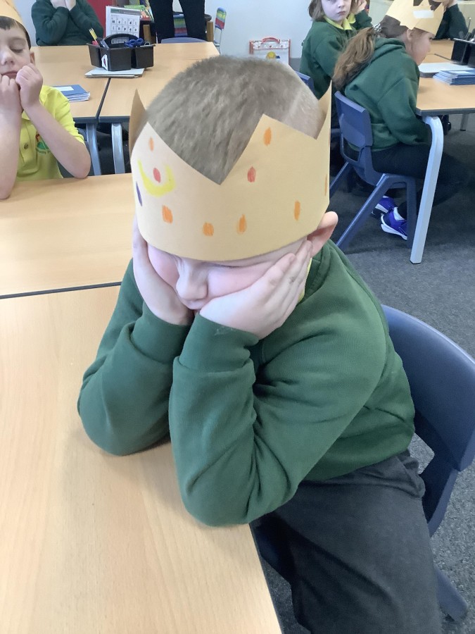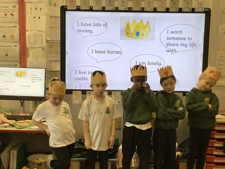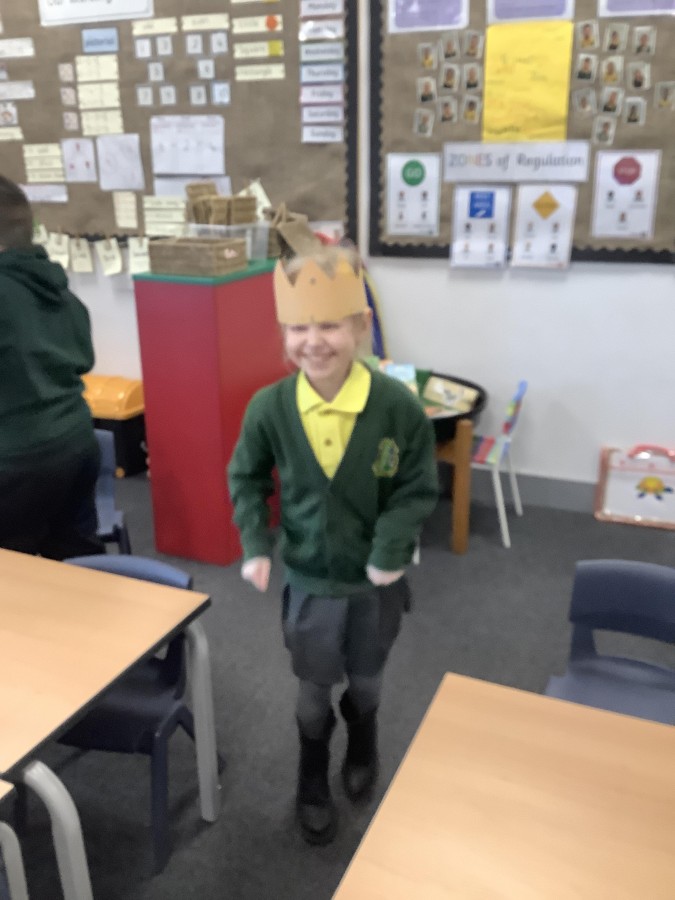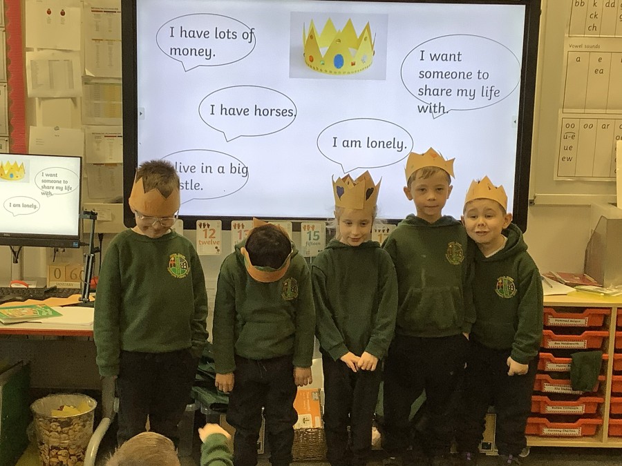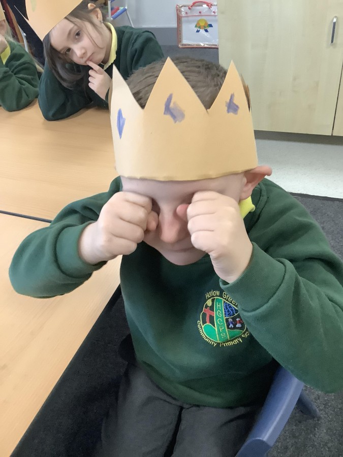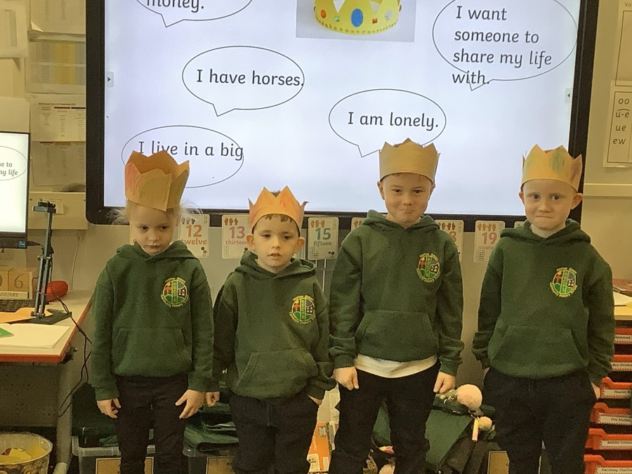 We began by playing a memory game where we looked at different objects to help us predict what the story was going to be about. The pupils looked at a princess, a prince, a crown, a castle, a pea and a bed. The children used these clues to guess what the story was going to be about. After this, the pupils made a crown for the prince. We acted out parts of the story. Sometimes we pretended to be handsome and proud of all our possessions. Other times, we pretended to be lonely and miserable, as all the prince wanted was a real princess. The children had so much fun and we discovered some brilliant actors and actresses.