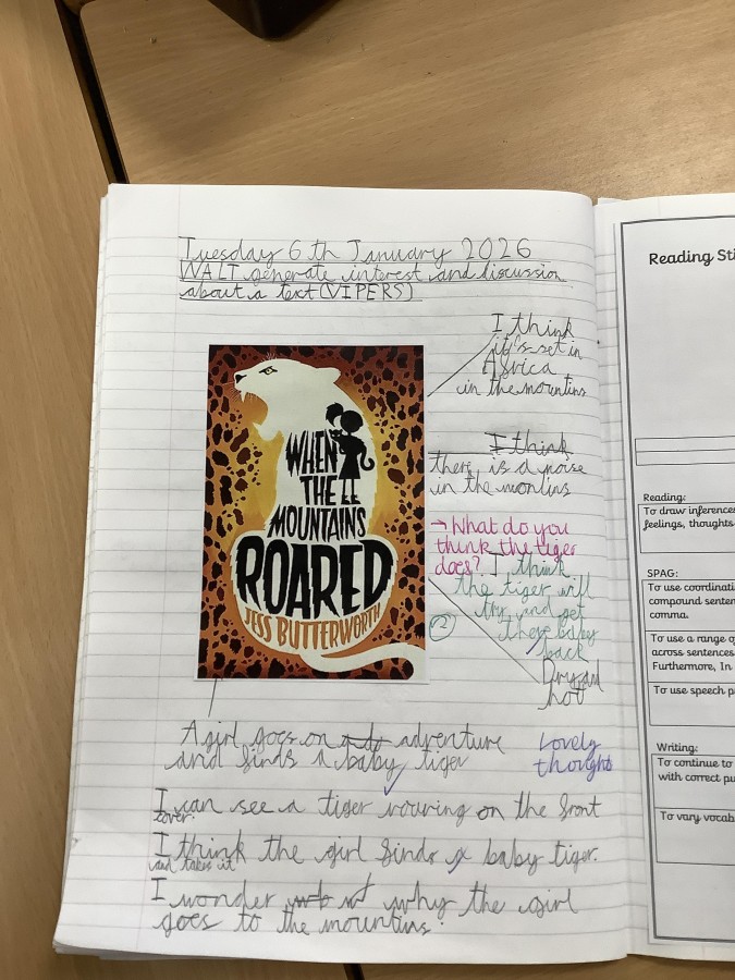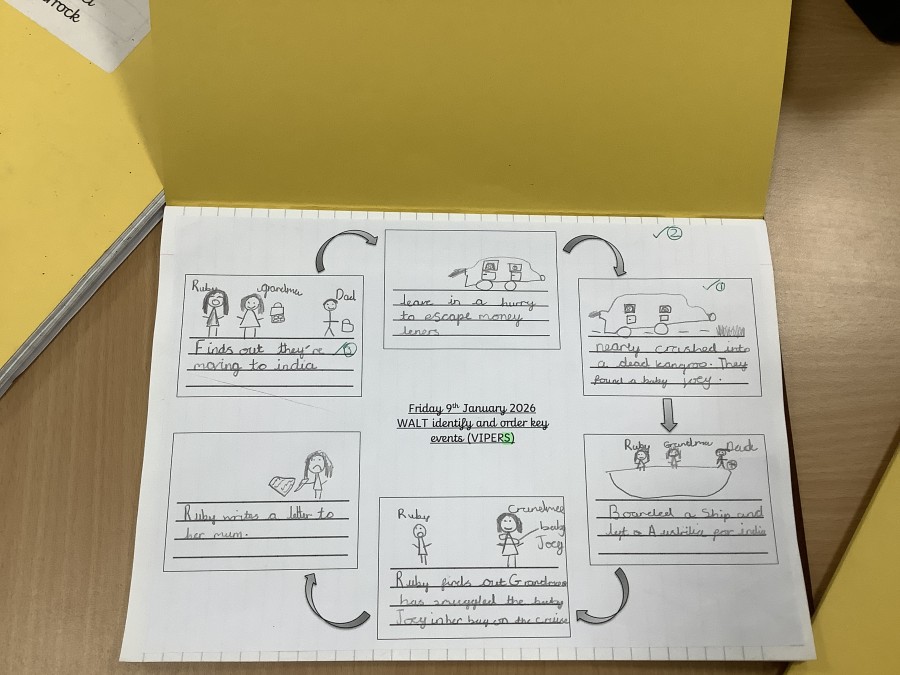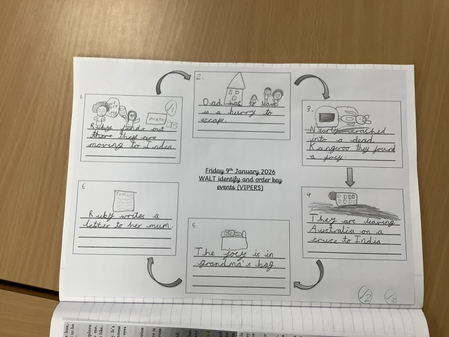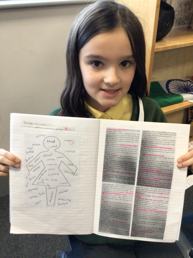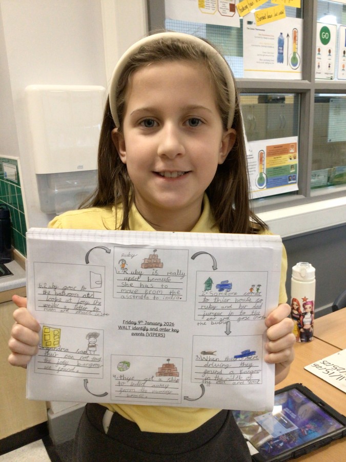 This week, year 4 have begun studying their new English text called ‘When The Mountains Roared’. It is a gripping story about a girl who moves from Australia with her father and grandmother to run a hotel in the mountains of India. It is a story full of suspense, drama and peril, and the children are already hooked! After a brief introduction, they described what they know, think and wonder about about the story. The children used their imaginations brilliantly to describe many interesting ideas. They then took a closer look at the vocabulary choices of the author. After identifying different word classes used in a descriptive extract, they suggested synonyms or alternative vocabulary. They then rewrote the extract using their own choice of vocabulary. Next, the children explored the feelings of the main character Ruby, looking for evidence of what she is feeling on the inside, and the emotions she is displaying on the outside. Finally, the children used their sequencing and summarising skills to create a story map of the key events they have read about so far.