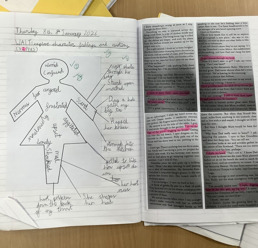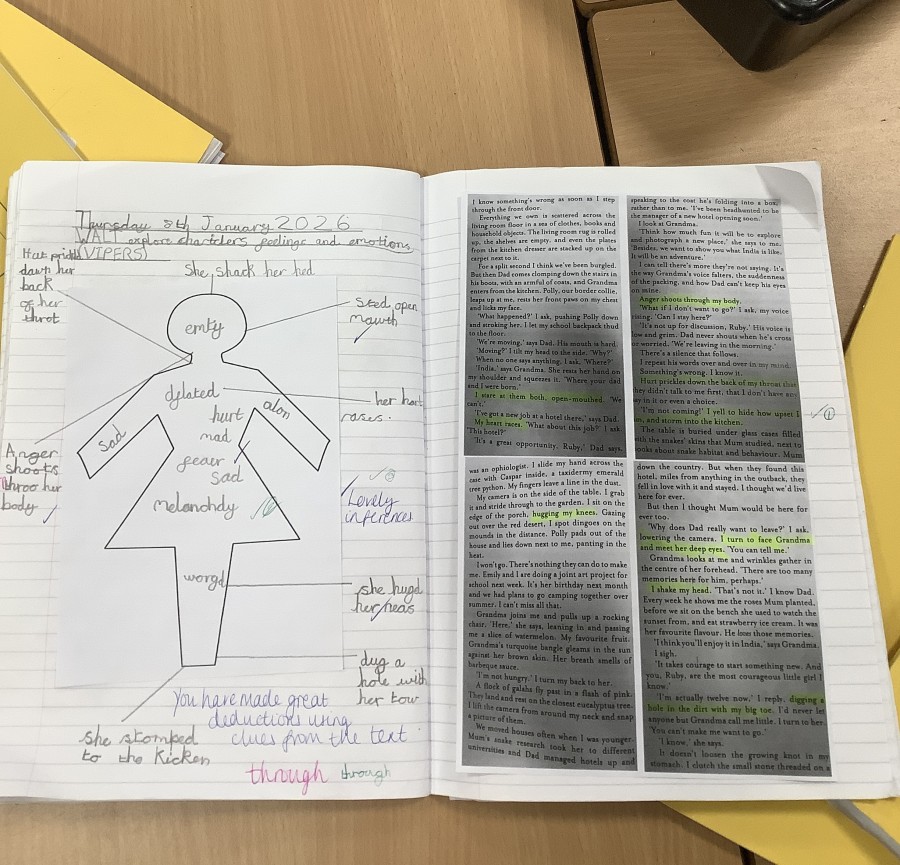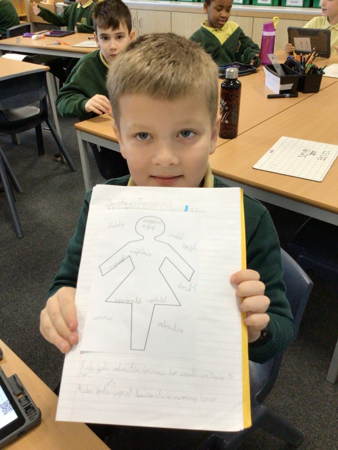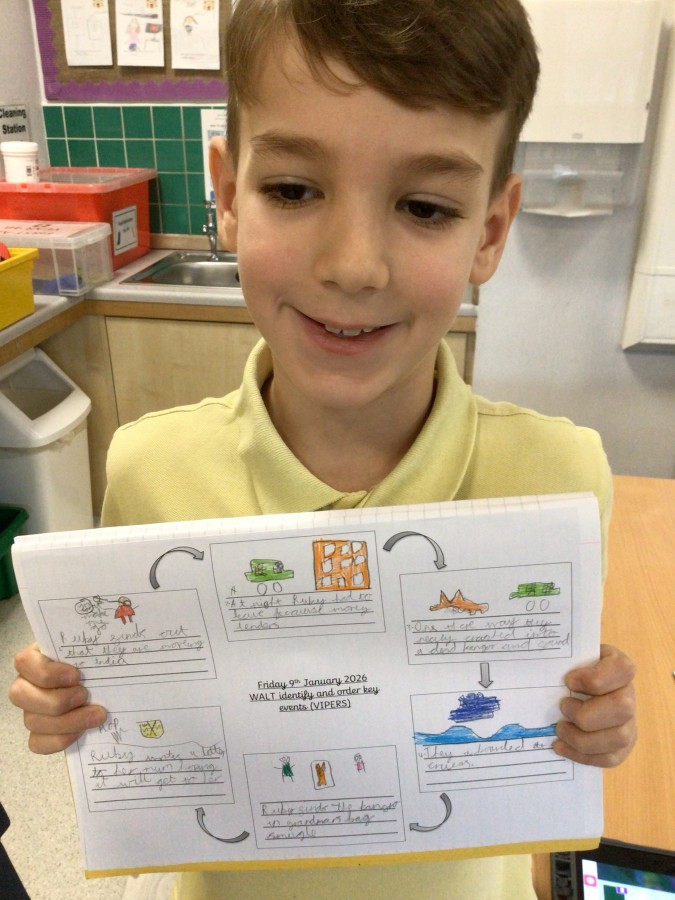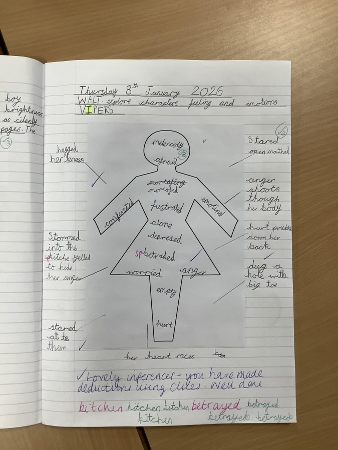 This week, year 4 have begun studying their new English text called ‘When The Mountains Roared’. It is a gripping story about a girl who moves from Australia with her father and grandmother to run a hotel in the mountains of India. It is a story full of suspense, drama and peril, and the children are already hooked! After a brief introduction, they described what they know, think and wonder about about the story. The children used their imaginations brilliantly to describe many interesting ideas. They then took a closer look at the vocabulary choices of the author. After identifying different word classes used in a descriptive extract, they suggested synonyms or alternative vocabulary. They then rewrote the extract using their own choice of vocabulary. Next, the children explored the feelings of the main character Ruby, looking for evidence of what she is feeling on the inside, and the emotions she is displaying on the outside. Finally, the children used their sequencing and summarising skills to create a story map of the key events they have read about so far.
