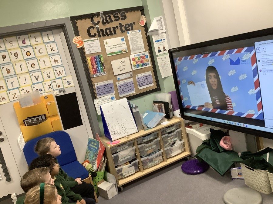 The Reception children rounded off their first week of term with a virtual workshop from the Postal Museum, kindly supported by Royal Mail. The session was based on The Jolly Postman by Janet and Allan Ahlberg, and the class followed along as our jolly postie guided them through a simple retelling of the story.