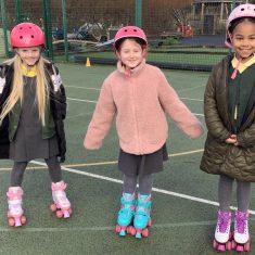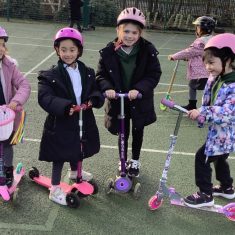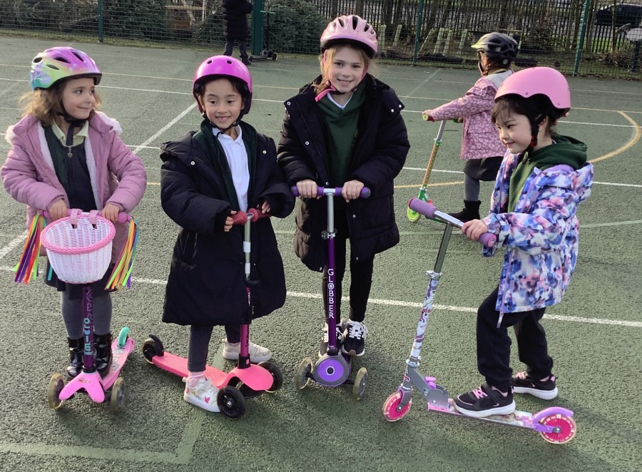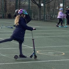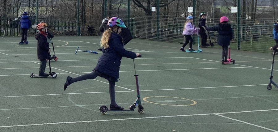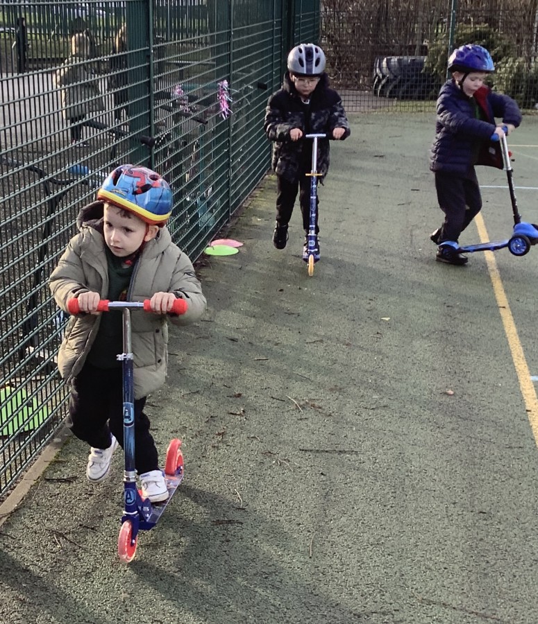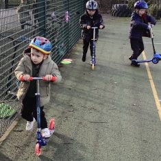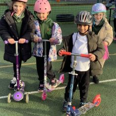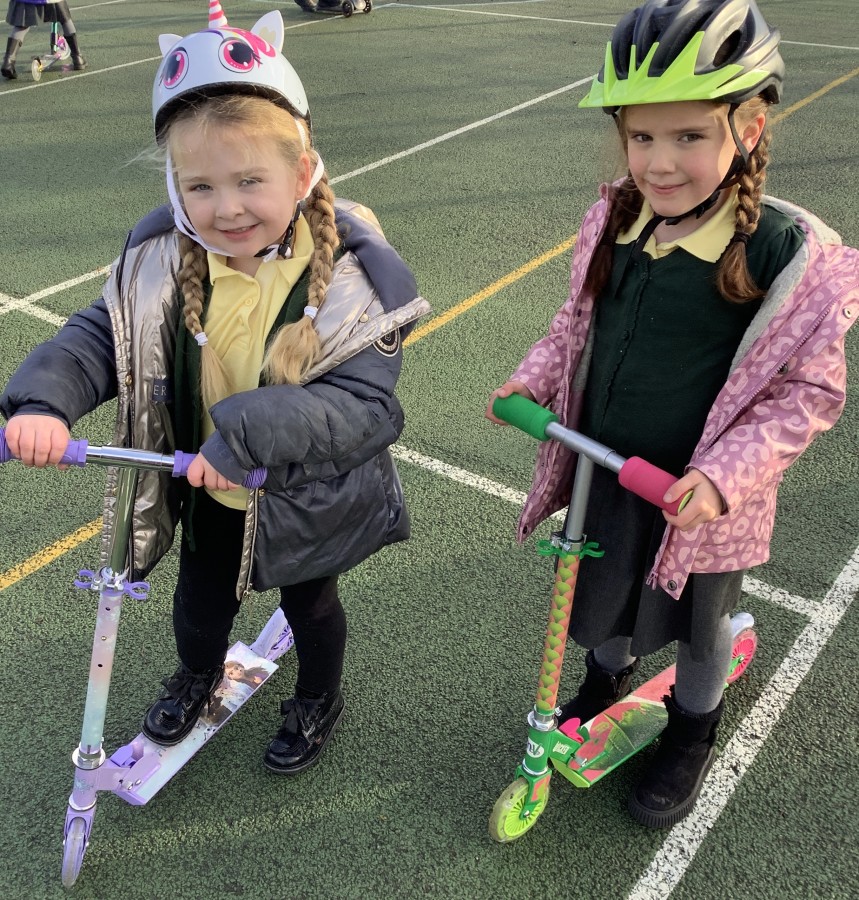 The children in years 1,2,3 and 4 got the chance this week to take part and they loved it! They could not wait to get out on their boots and scooters and enjoy developing and perfecting their wheeled skills whilst exercising with and supporting their classmates. It was a definite thumbs up from all of them. We had all sorts of helmets from unicorns to punk rockers and a whole range of scooters and funky boots.