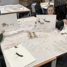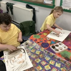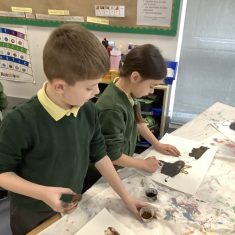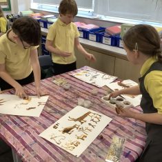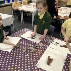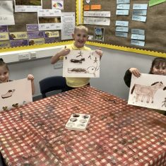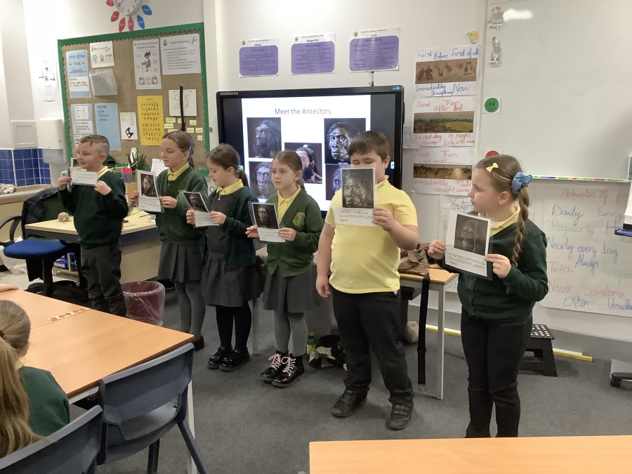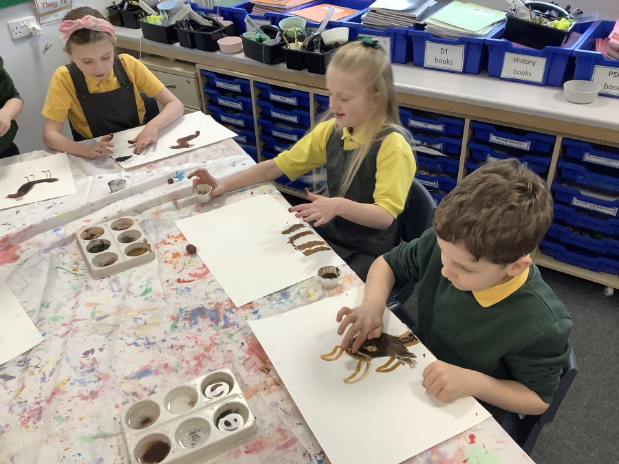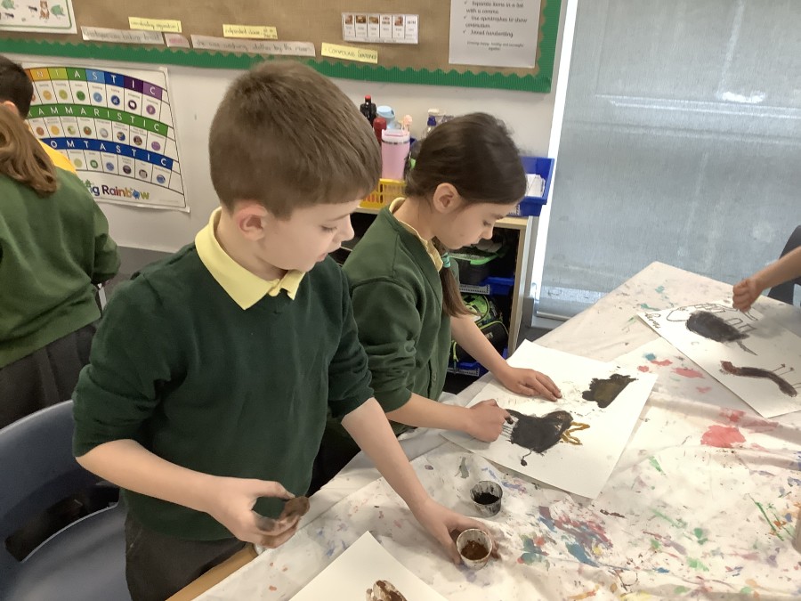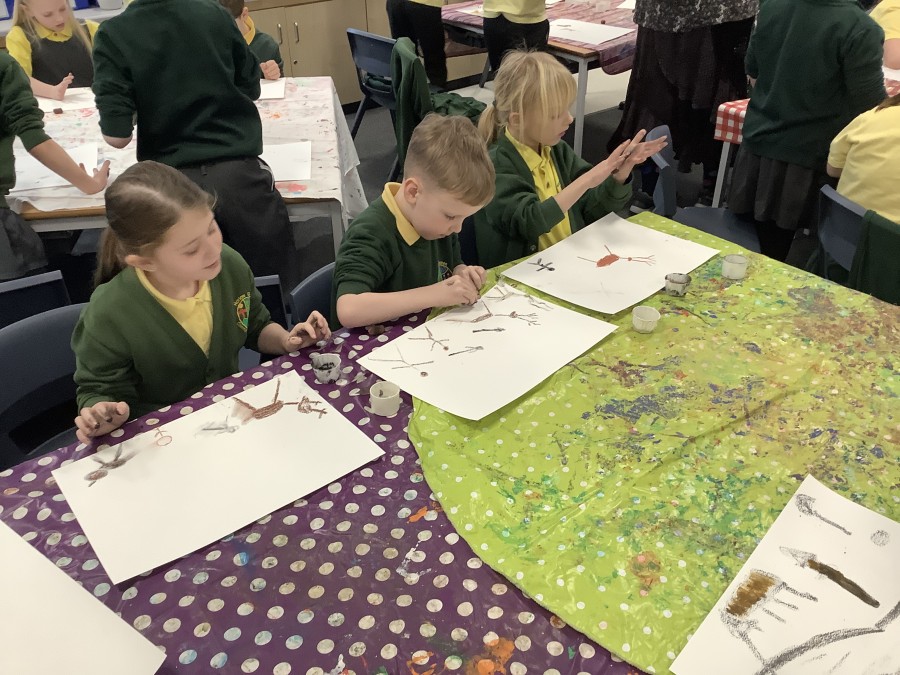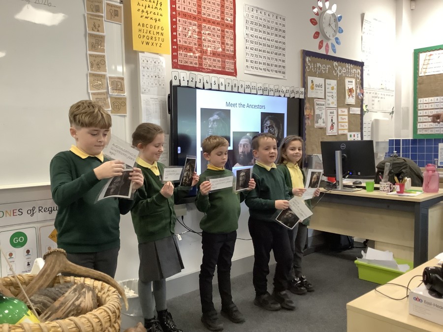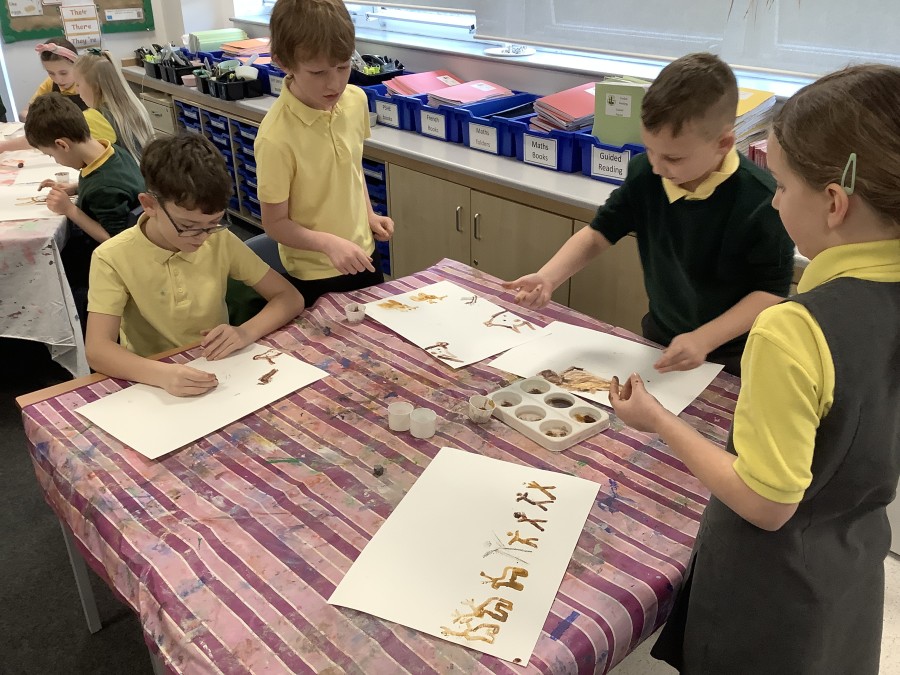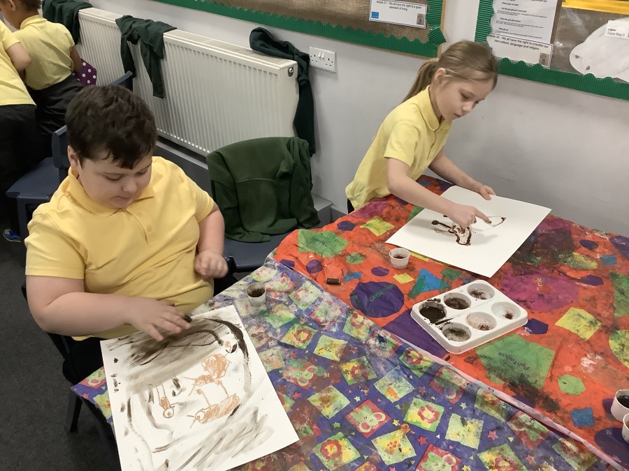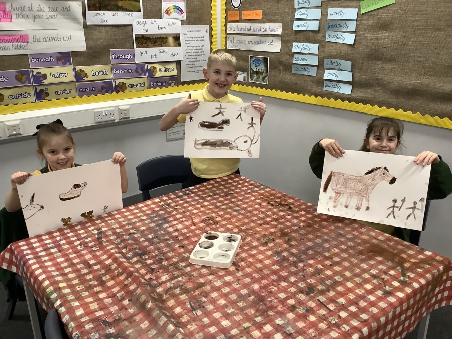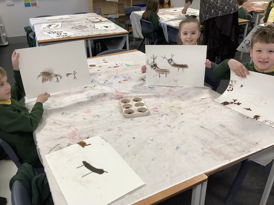 Using a giant string timeline, the class explored just how far back the Stone Age really was and learned about the development of humans over time. They discovered how homes and daily life changed, what it was like to live as a hunter-gatherer, and how everything transformed with the introduction of farming. The children even became Stone Age artists themselves, creating their own cave paintings using natural pigments—just like early humans did!