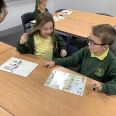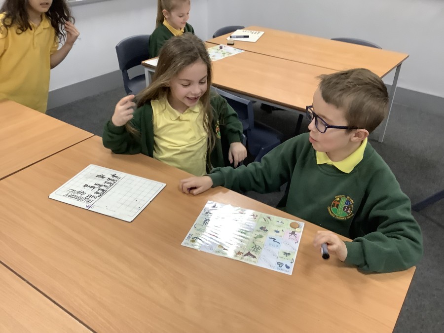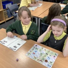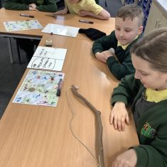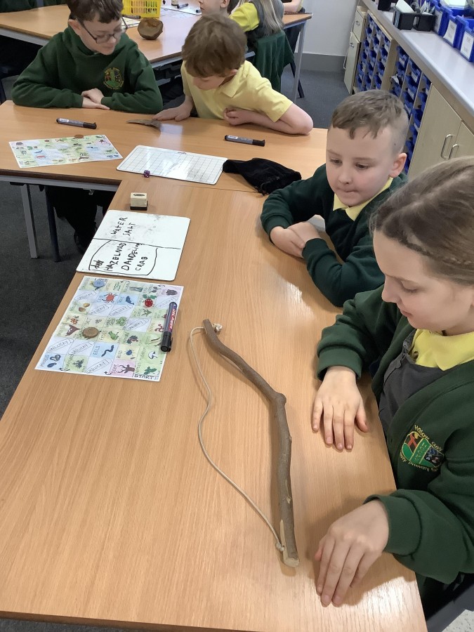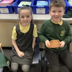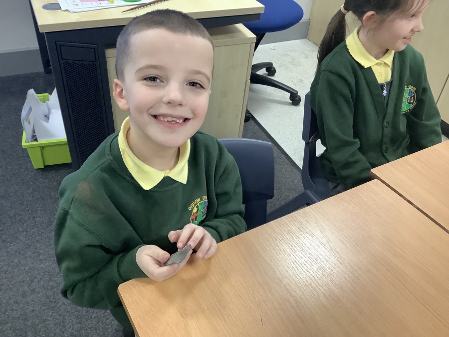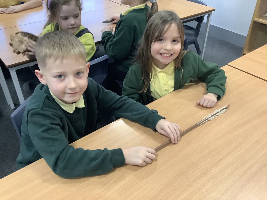 There was lots of fun too, including a hunter-gatherer version of snakes and ladders, where the children worked to collect foods and create their own Stone Age meal. One of the most exciting moments was handling artefacts, including a flint tool that is around 65,000 years old!