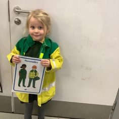 We listened to the story called ‘When we grow us’ which talked us thorough lots of different jobs that we might be able to do when we are bigger. We learnt lots of interesting things about the different clothing and equipment that different people need to complete their day to day jobs. We spent time sorting the different uniforms and resources to distinguish what each person who helps us would need. We learnt about fire fighters, nurses and doctors, police, paramedics, dentists, chefs and builders. We also spent time in the painting area painting different emergency vehicles such as police cars, fire engines, and ambulances.