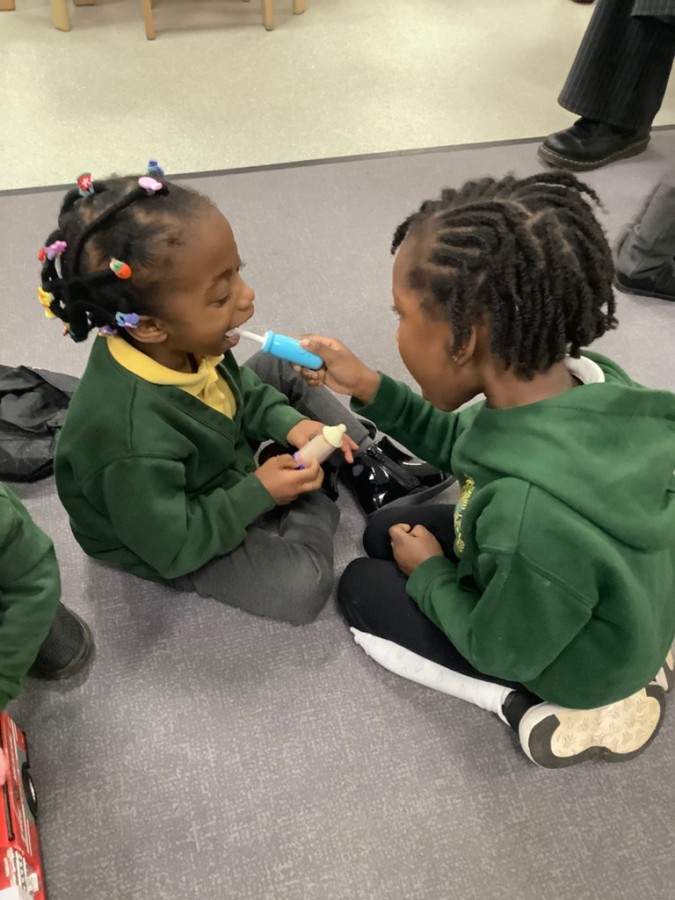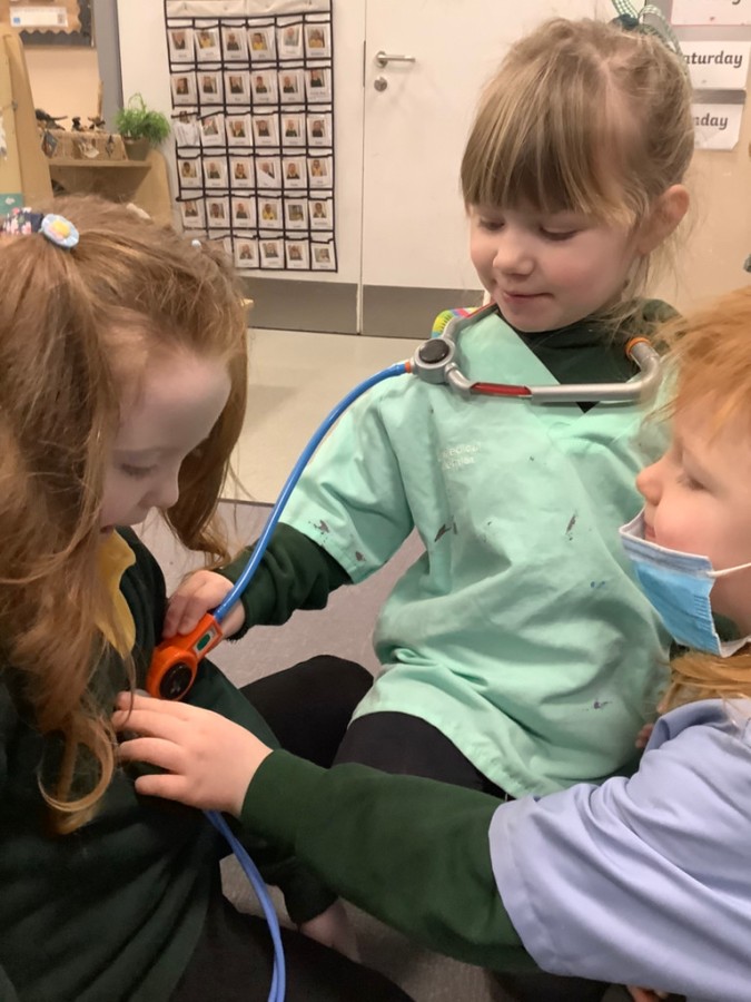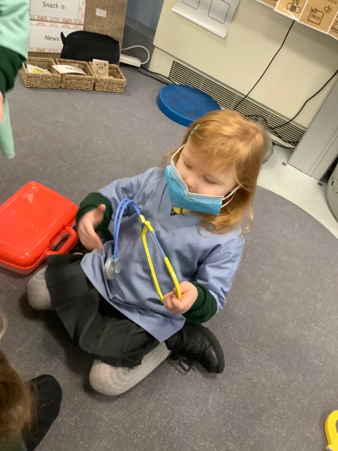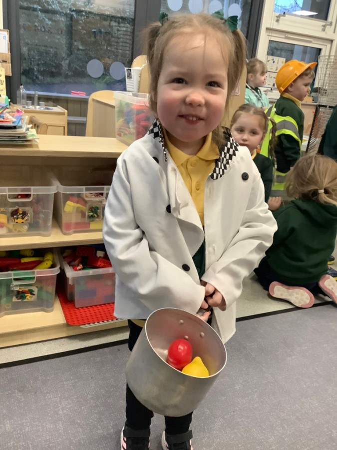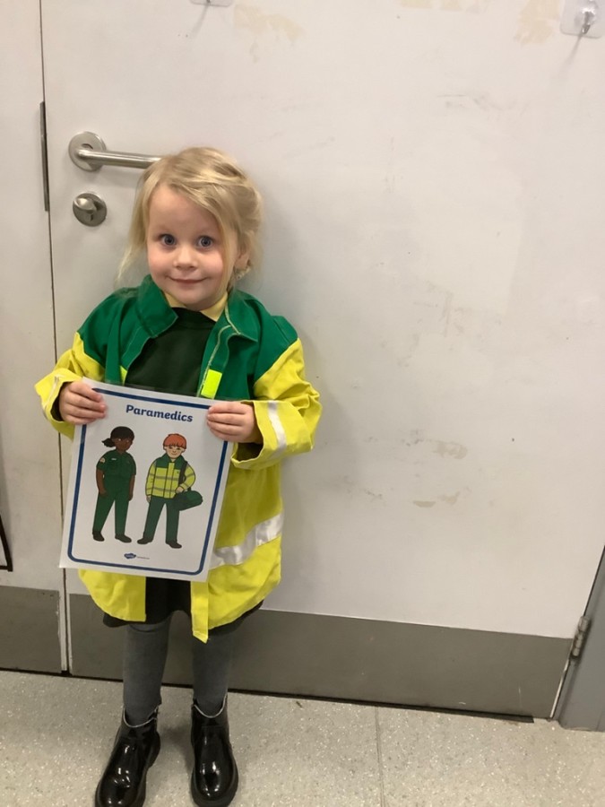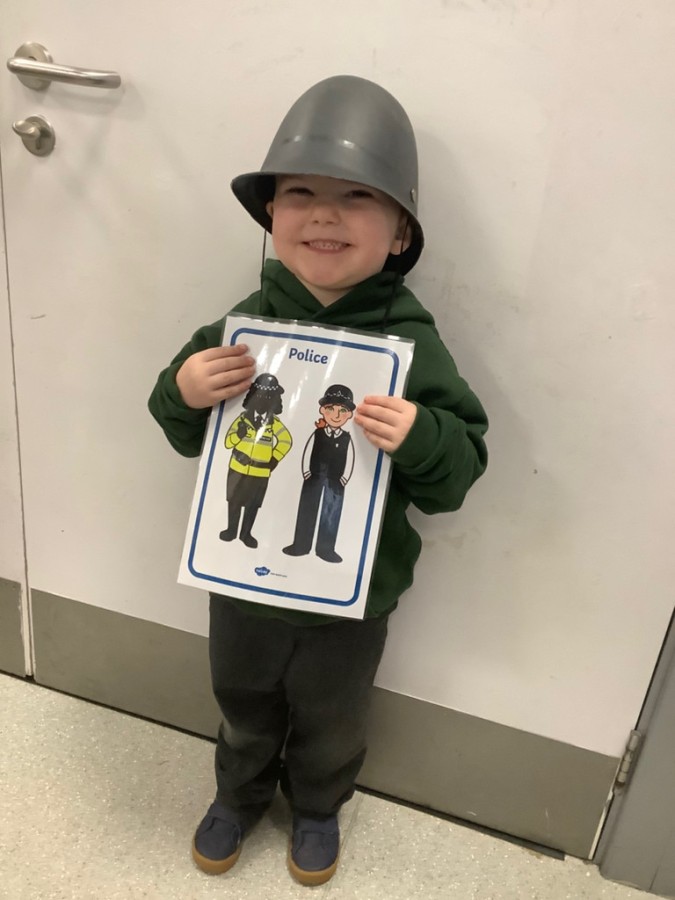 We listened to the story called ‘When we grow us’ which talked us thorough lots of different jobs that we might be able to do when we are bigger. We learnt lots of interesting things about the different clothing and equipment that different people need to complete their day to day jobs. We spent time sorting the different uniforms and resources to distinguish what each person who helps us would need. We learnt about fire fighters, nurses and doctors, police, paramedics, dentists, chefs and builders. We also spent time in the painting area painting different emergency vehicles such as police cars, fire engines, and ambulances.