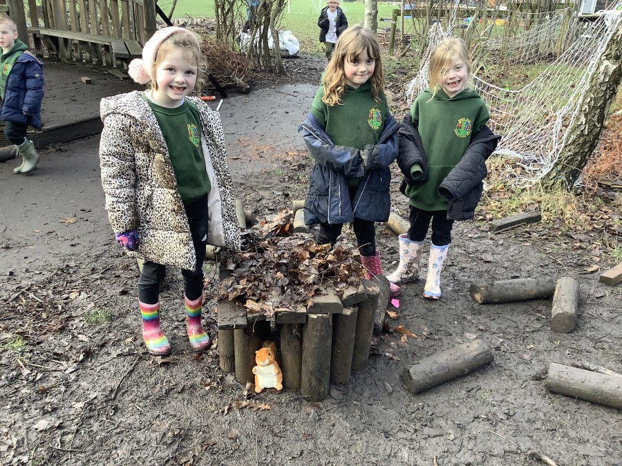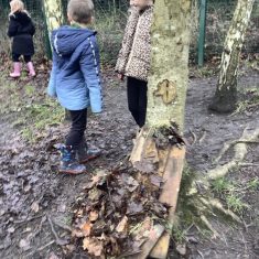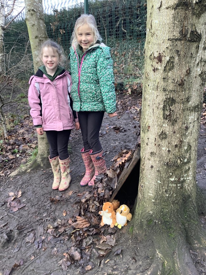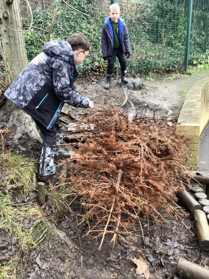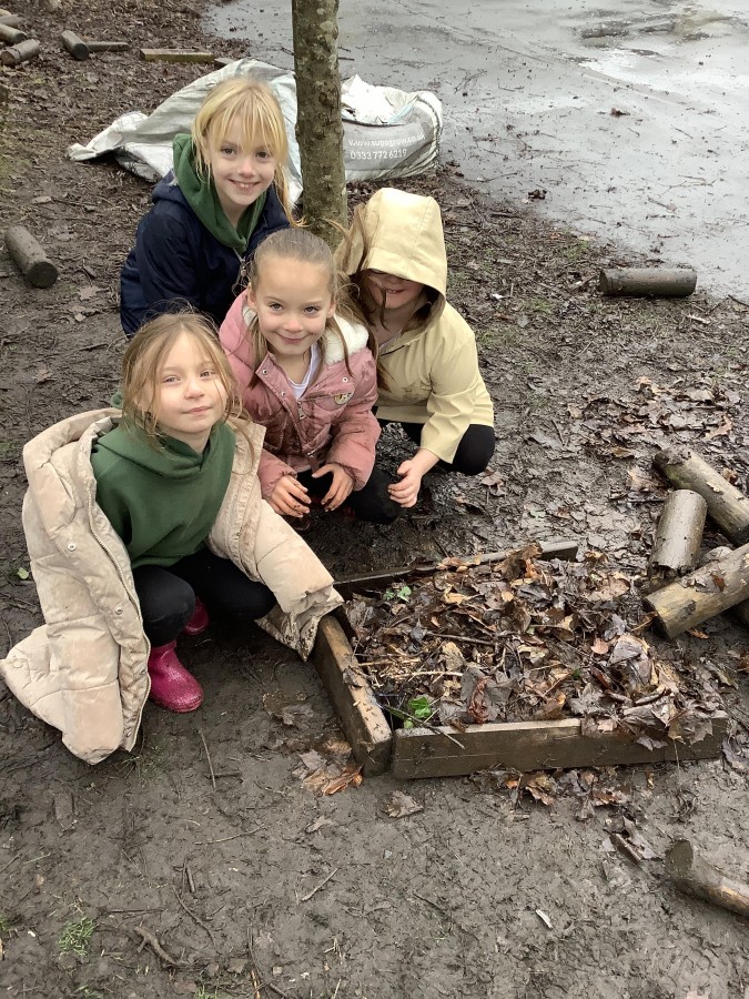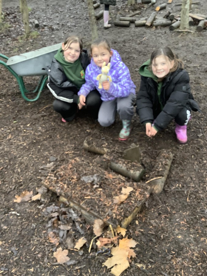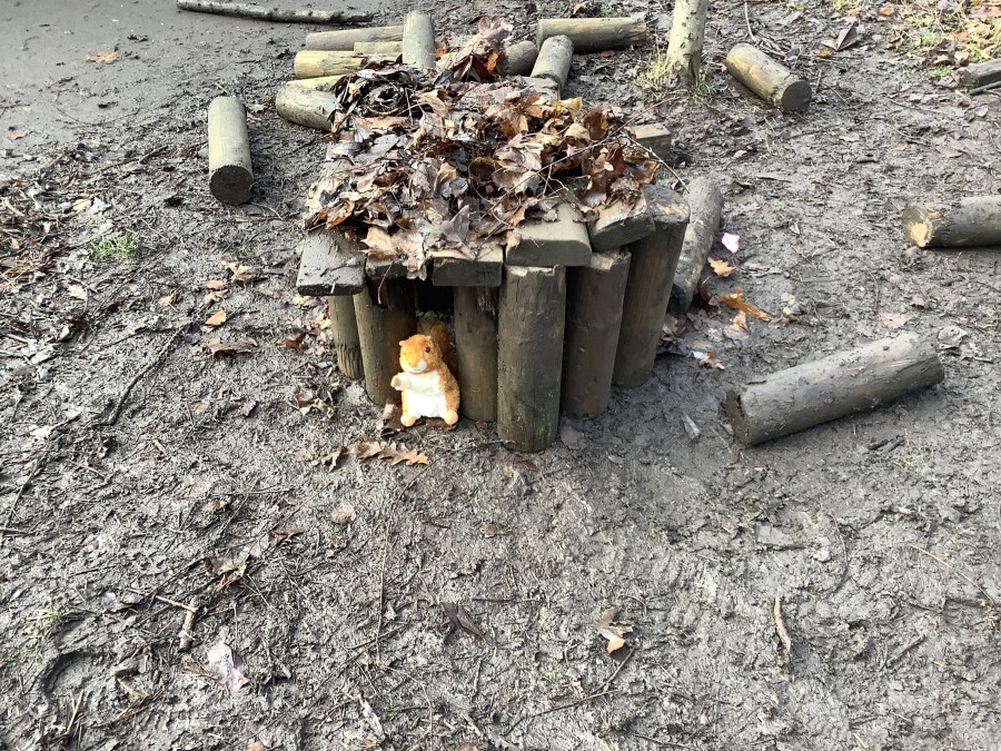 This week we have been learning about birds of prey, their characteristics compared to our familiar garden birds and how and what they hunt. With this in mind once out in the Forest school the children tried their hand at making prey homes that were camouflaged from the sky so no hovering kestrels could see them. They were really successful. They used the ipad as they were building to take photos from above so they could see any parts that stood out to the naked eye, a random coloured stick or an oddly shaped doorway, then they could use that information to camouflage further. The results were very successful.