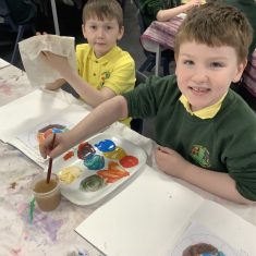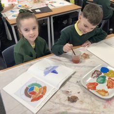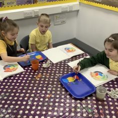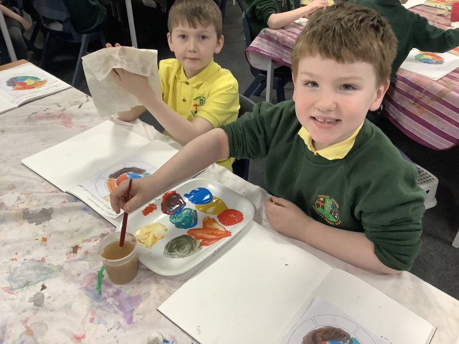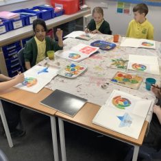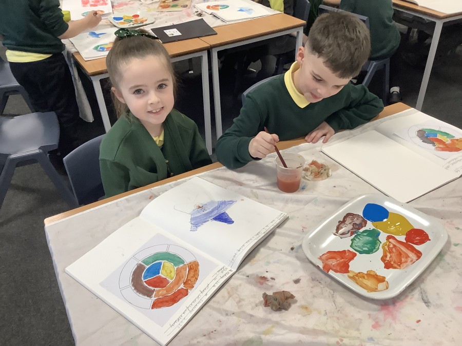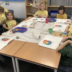 The children had to work extremely carefully to mix paints on their pallet whilst ensuring they didn’t blend together incorrectly, but also leaving enough to then create the tertiary colours with.