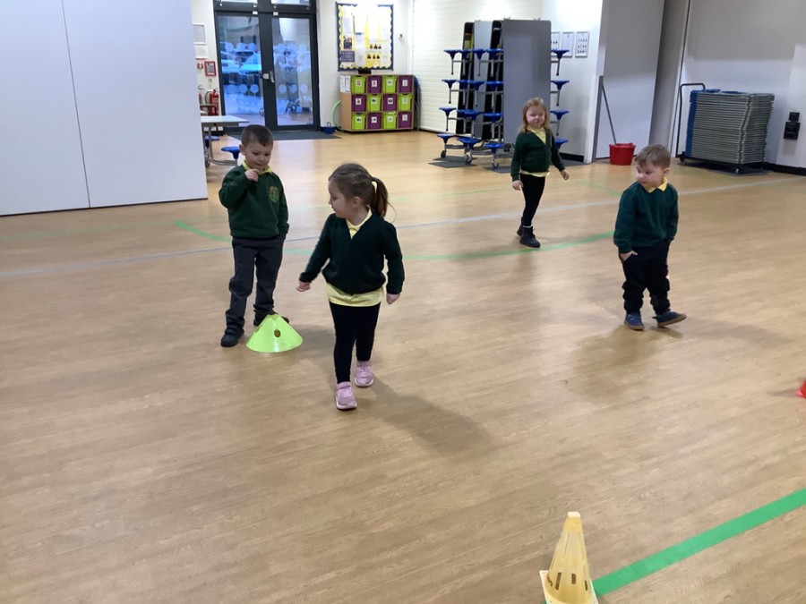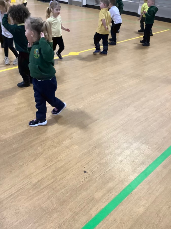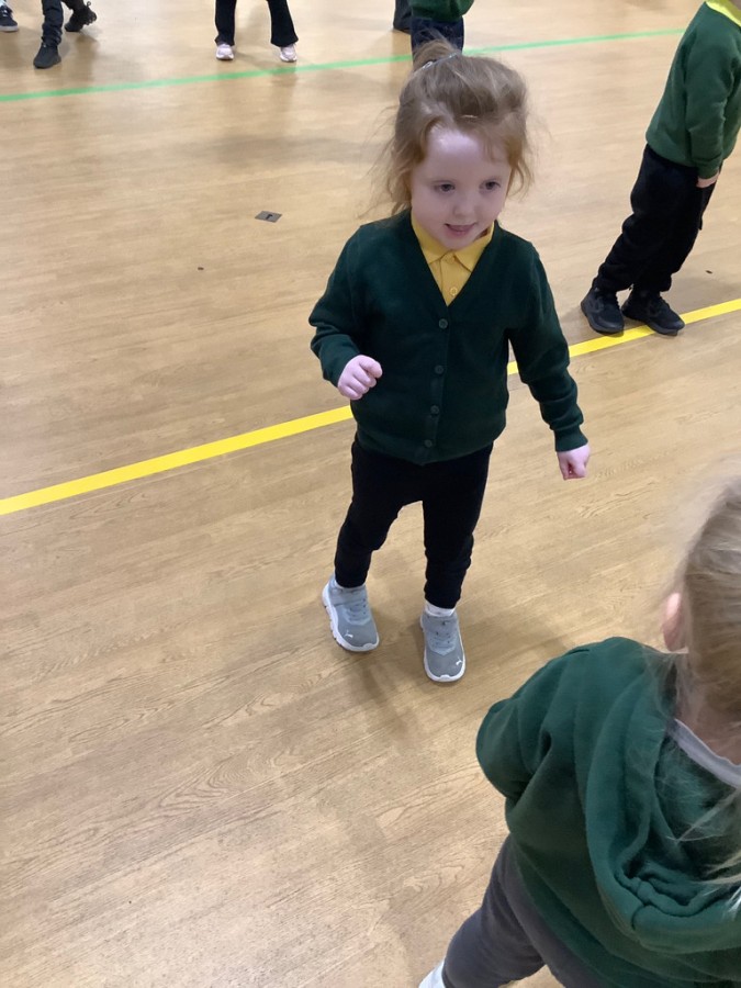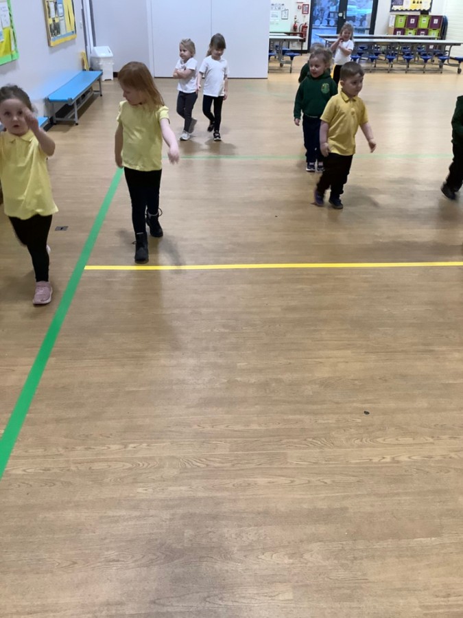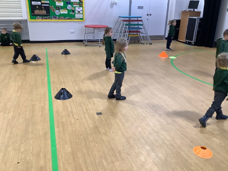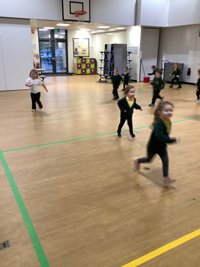 Today in PE, we have been working hard to move around the hall in a variety of different ways. We re-capped moving from one line to another pretending to be aeroplanes, giants, crabs and giraffes. We then played a game focusing on moving in different directions. We moved forwards, backwards, left and right. We had to listen carefully to a set of instructions of which direction to move in and by how many steps. We continued to work on our key game, from the last few weeks, of traffic lights. We needed to move around the room without bumping into anyone and listen carefully to which colour was being shouted. We had green as running, amber as walking and red meant stop.