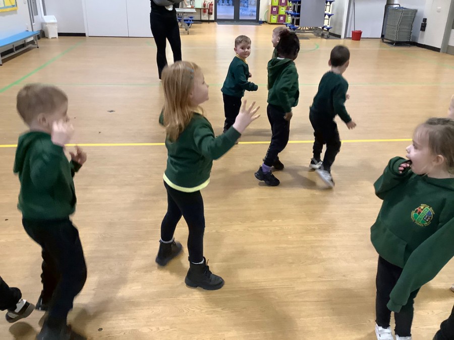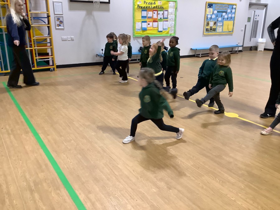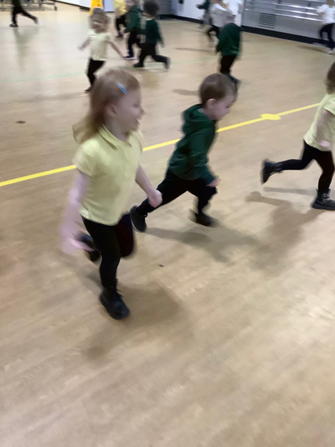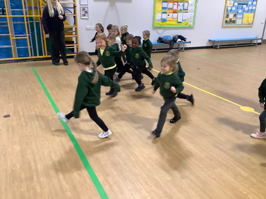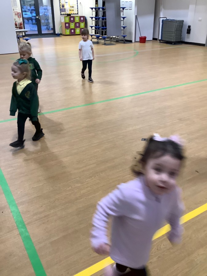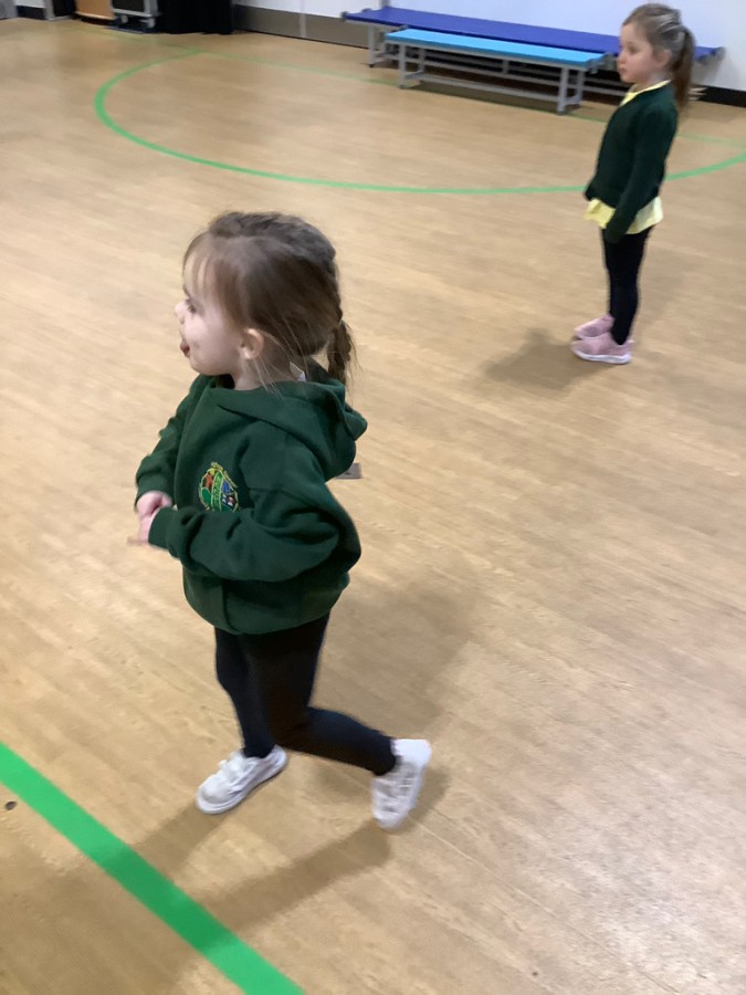Today in PE, we have been working hard to move around the hall in a variety of different ways. We re-capped moving from one line to another pretending to be aeroplanes, giants, crabs and giraffes. We then played a game focusing on moving in different directions. We moved forwards, backwards, left and right. We had to listen carefully to a set of instructions of which direction to move in and by how many steps. We continued to work on our key game, from the last few weeks, of traffic lights. We needed to move around the room without bumping into anyone and listen carefully to which colour was being shouted. We had green as running, amber as walking and red meant stop.