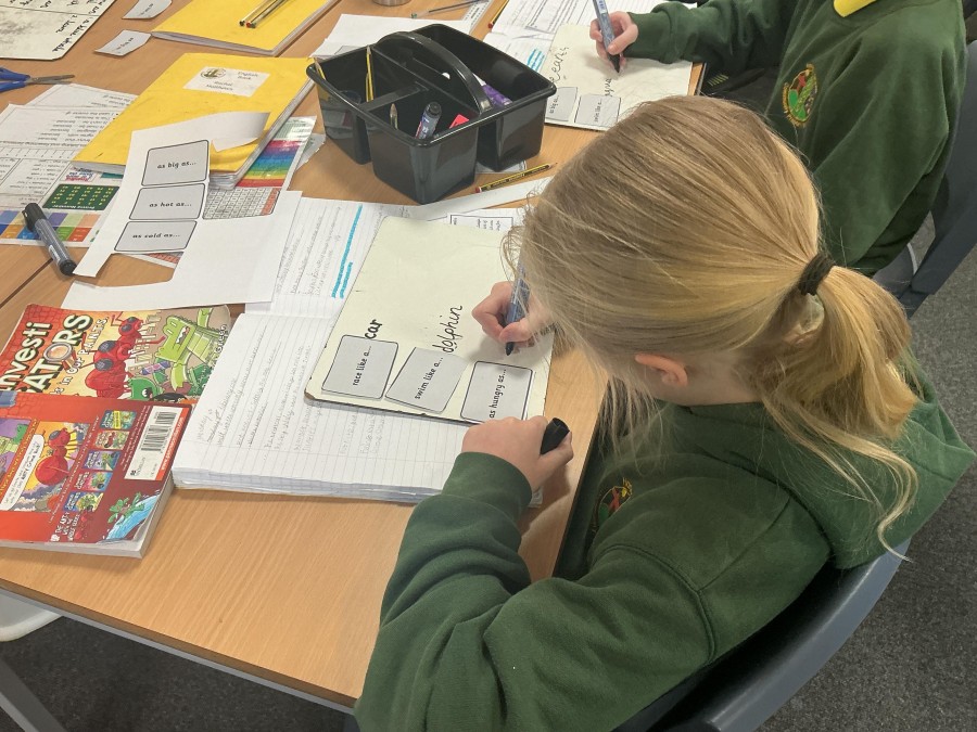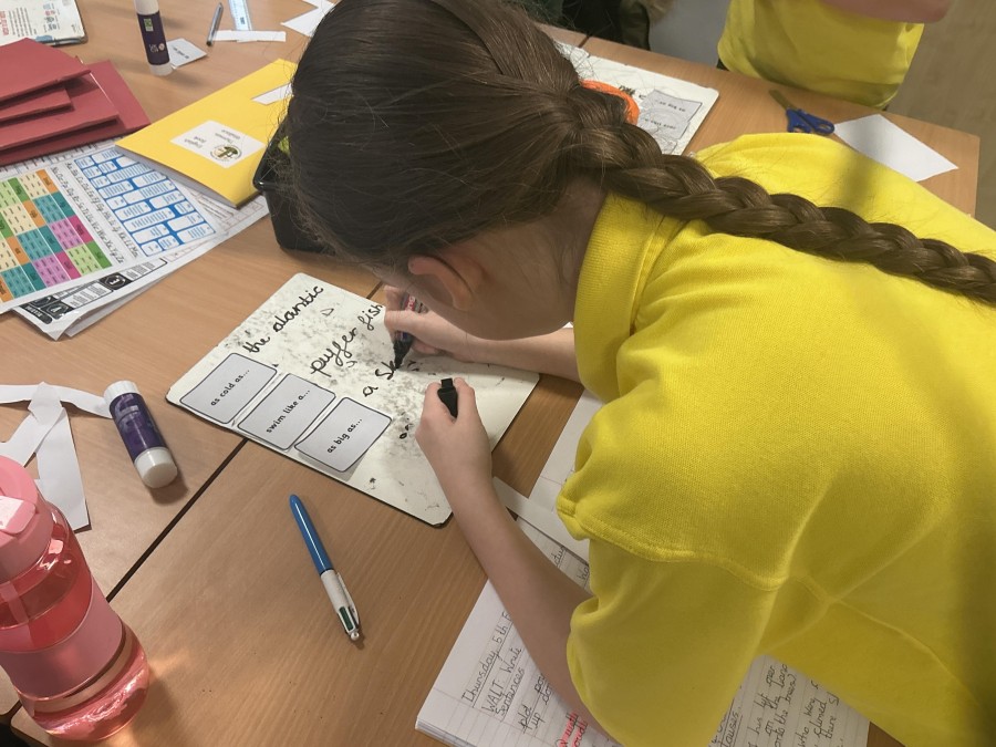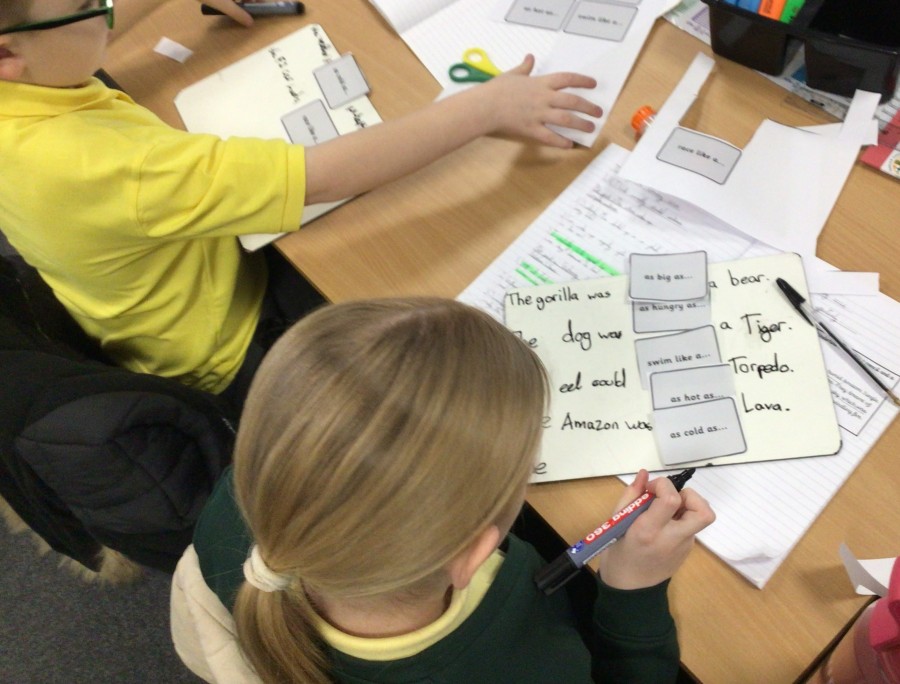 To extend their learning further, the children created sentence openers and began expanding their similes using subordinate clauses, including conjunctions such as ‘because’. This helped them to build more detailed and interesting sentences.