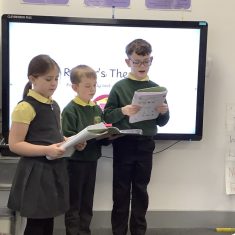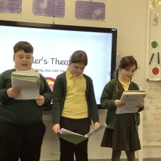 This week, Year 3 have been developing their reading fluency through Reader’s Theatre, using our end-of-day class text Bill’s New Frock by Anne Fine. The children focused particularly on adding expression to their reading, thinking carefully about how characters might be feeling and how this should be reflected in their voices.