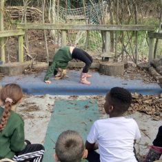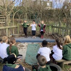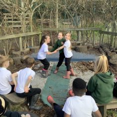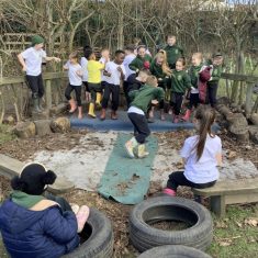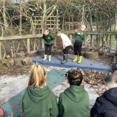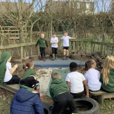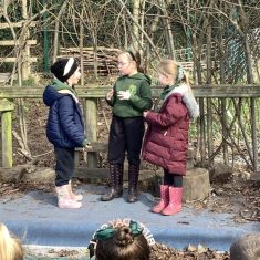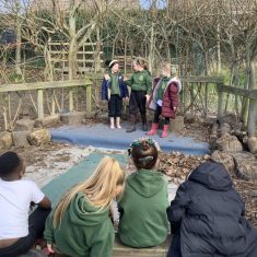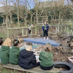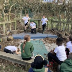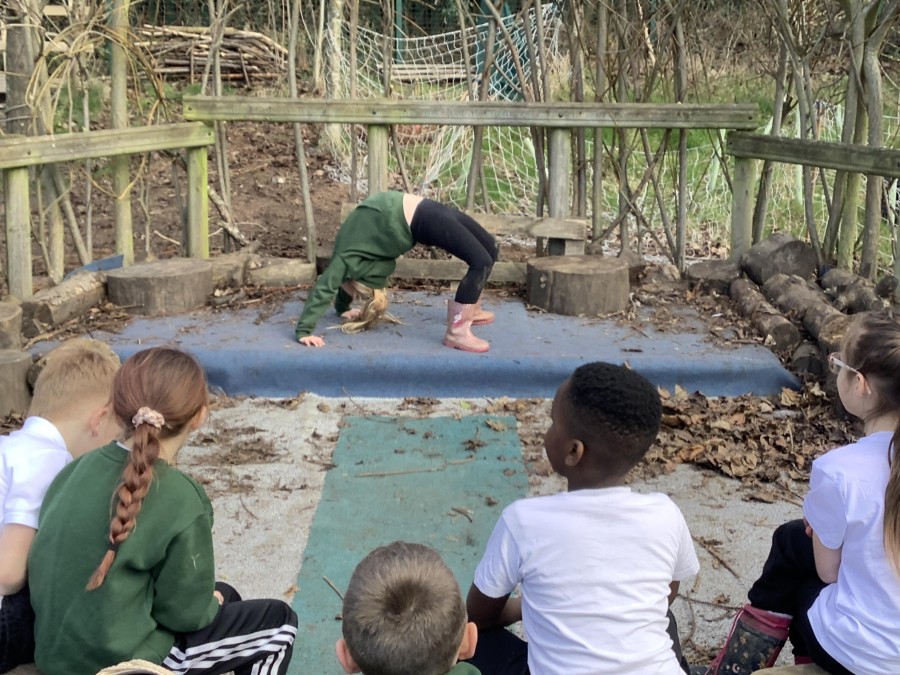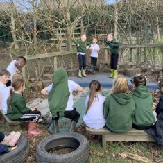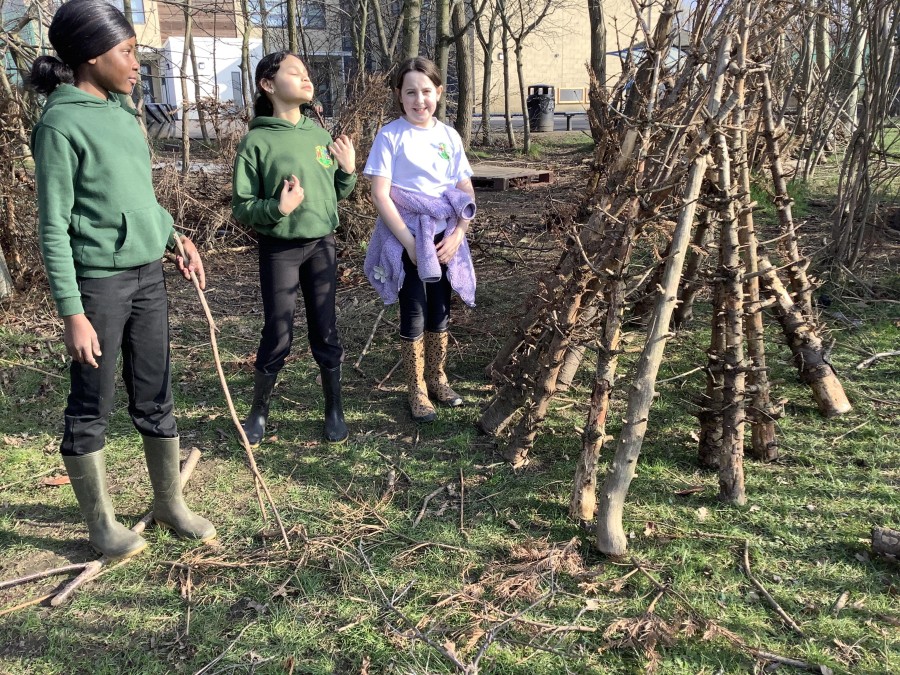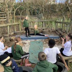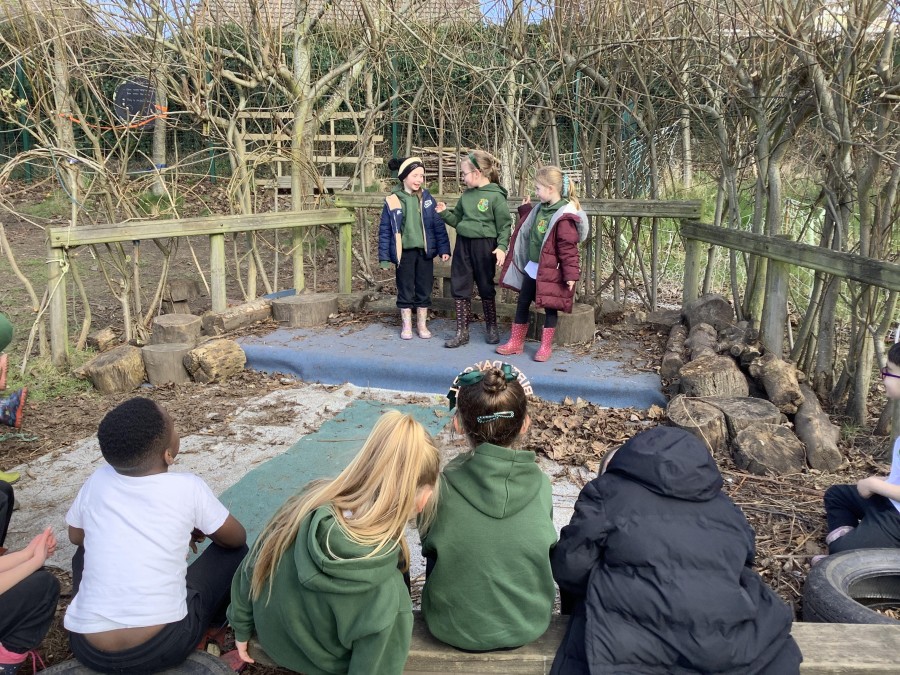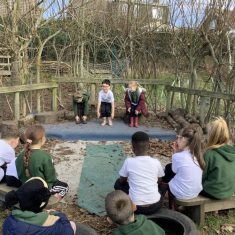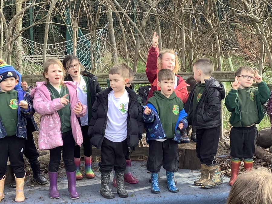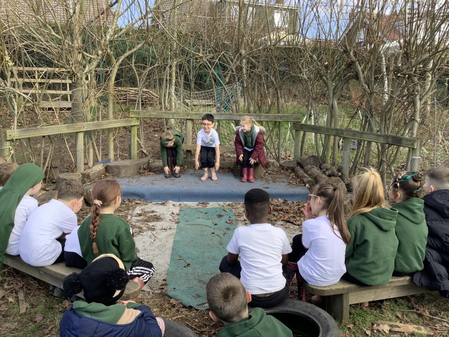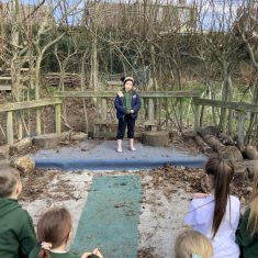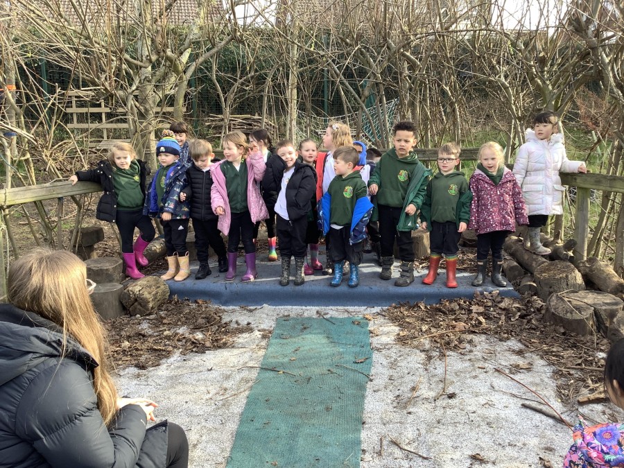 This week it has been so beautiful to have clear, expansive, blue skies, light shining down and not a breath of wind. A beginning of Spring filled with hope, after a very dark, wet winter. All Year groups are still learning about bird identification, playing games to help embed that knowledge but now we can also start enjoying the sunshine and exploring the Forest School. Before half term Miss Rowe set up a woodland stage and the children have been using it to showcase their talents. This week we did this together but the children will be able to access this in their free play time.