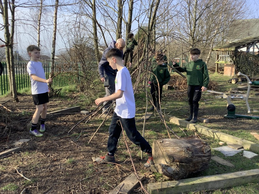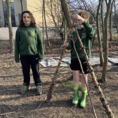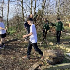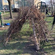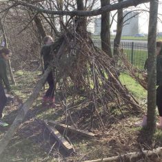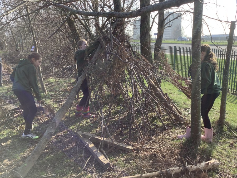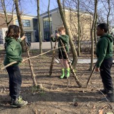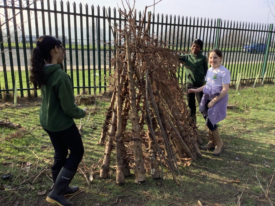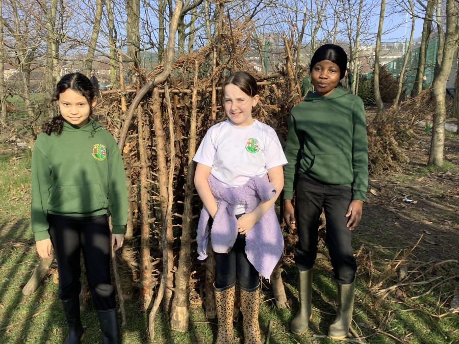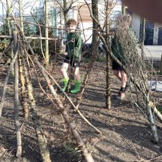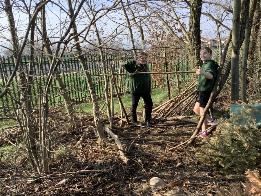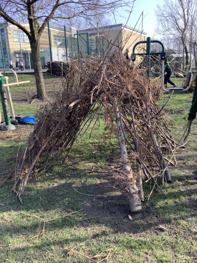 Year 6 tried their hand at freestanding shelters and the adults had a go too. This is really challenging, especially without tools or fastenings. They will progress their skills over this half term, looking at making woodland beds and really understanding using natural materials for weather-proofing.