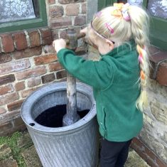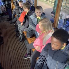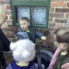 The children were so excited to be going on a school trip and after an immensely exciting bus journey, we arrived at Beamish. We tried to visit as many places at Beamish as possible. We started off by riding on the bus. We all had to hold on tightly and listen to the conductor ring the bell before we set off. The ride was very rickety! Next, the children enjoyed the farm. We saw sheep and a sow with some piglets. We talked about the allotment and why there was a scarecrow there.