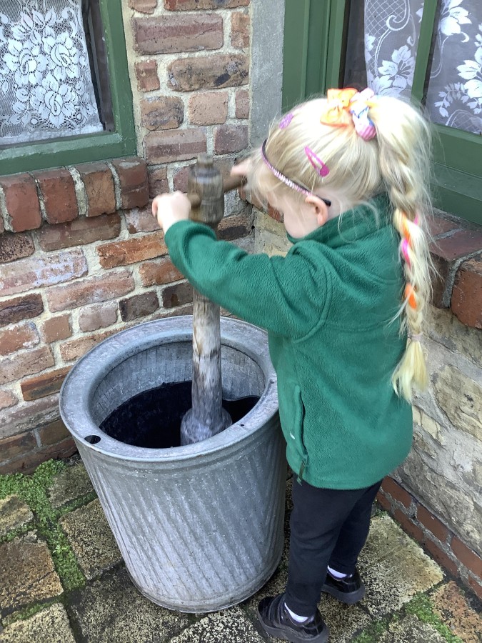 The children were so excited to be going on a school trip and after an immensely exciting bus journey, we arrived at Beamish. We tried to visit as many places at Beamish as possible. We started off by riding on the bus. We all had to hold on tightly and listen to the conductor ring the bell before we set off. The ride was very rickety! Next, the children enjoyed the farm. We saw sheep and a sow with some piglets. We talked about the allotment and why there was a scarecrow there.