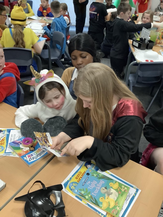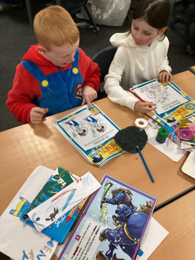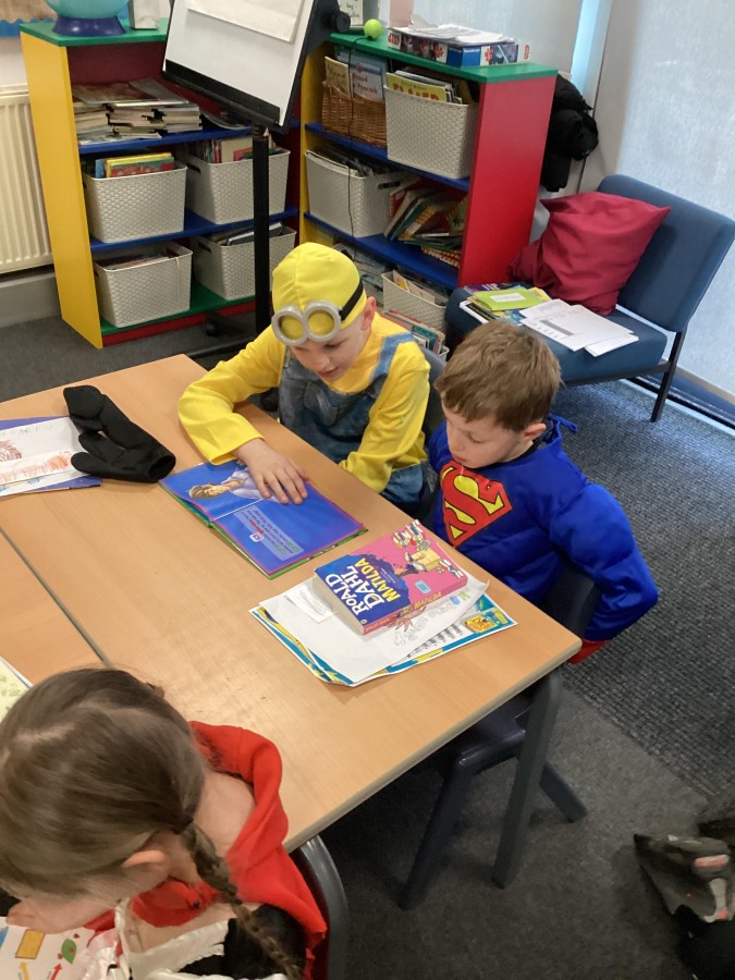 Throughout the day, there have been various activities around school where children have designed vegetable villains, created book tokens and book marks, taken part in quizzes and designed their own reading bookshelf. It has been lovely to see the enthusiasm in all classrooms and a huge thank-you to all of the parents and carers for the effort made with the costumes – the children looked amazing.
